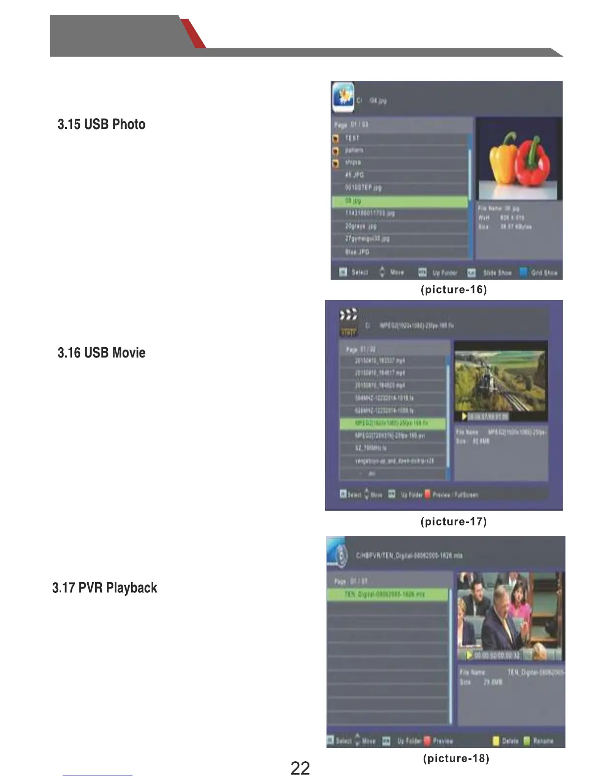 Select USB Photo option, press “ENTER”key
