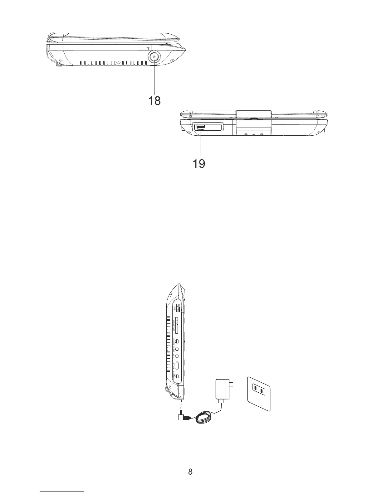 F&U DVT98607 - POWERING AND CONNECTIONS; INDOOR POWERING AND BATTERY CHARGING; AUDIO;VIDEO OUTPUT AND HEADPHONE CONNECTION; AUDIO;VIDEO INPUT CONNECTION