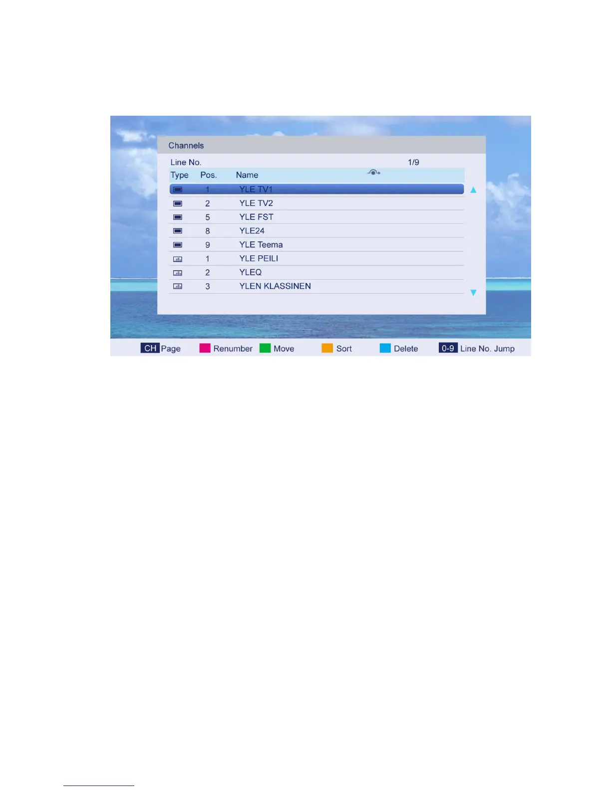 YELLOW button: Press this button to restore the order of the default channel.