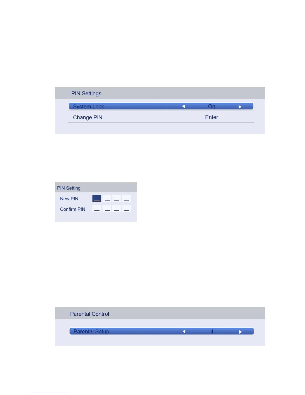 Press ▲/▼ button to select PIN Setting, then press ENTER button to enter the submenu by
