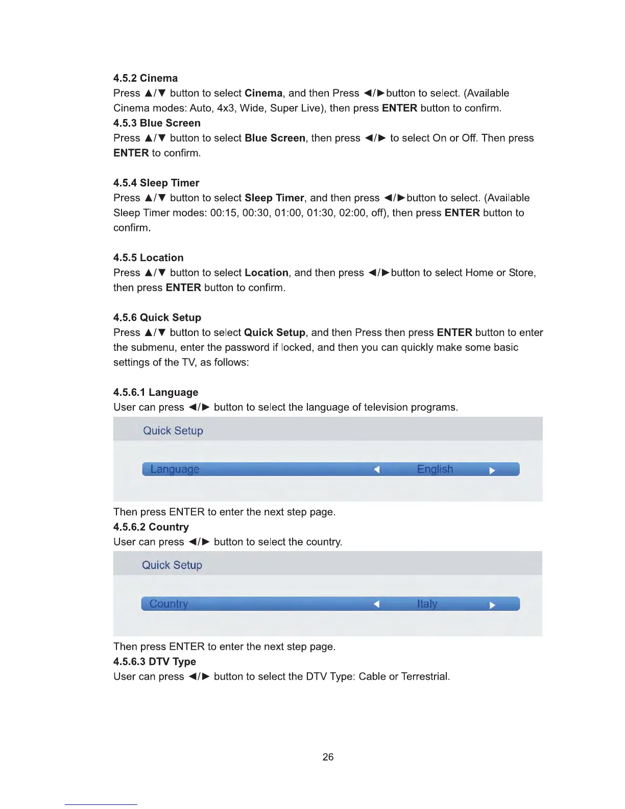 F&U FL32104 - Cinema; Blue Screen; Sleep Timer; Location