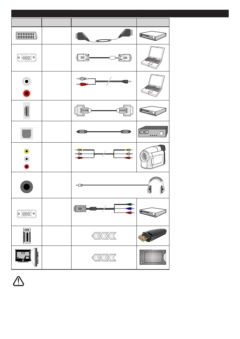 If you want to connect a device to the TV, make sure that both the TV and the device are turned off before making