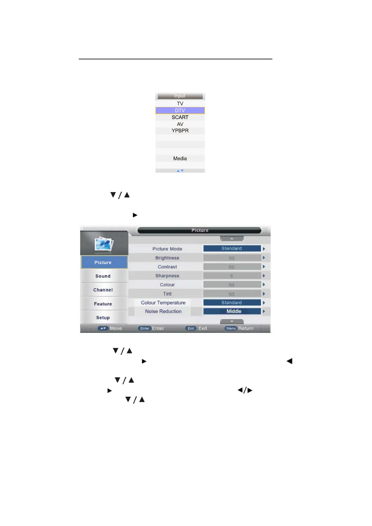 για να εισέλθετε στο υπο-μενού και πατήστε για να