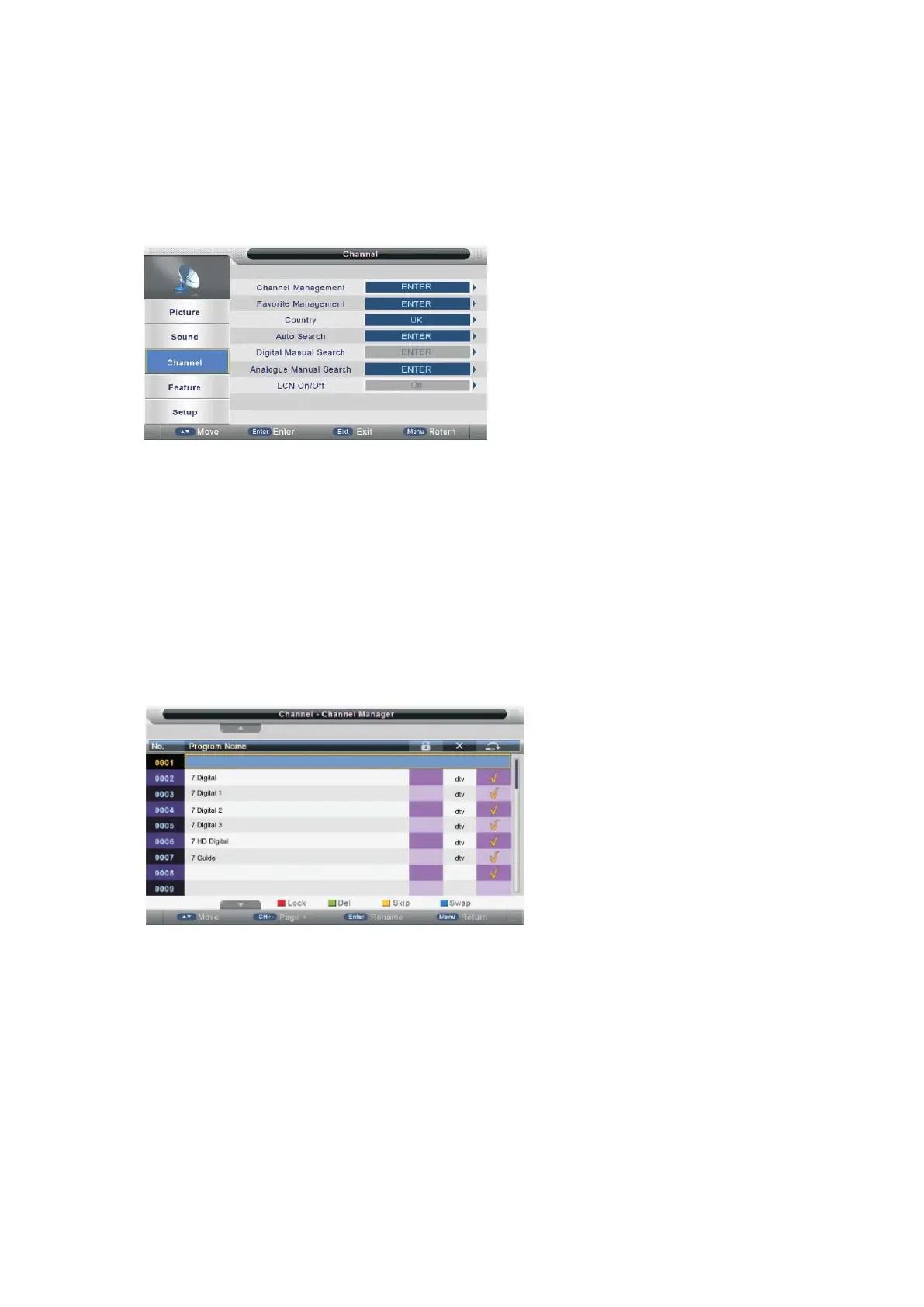 Πατήστε ▲/▼ για να επιλέξετε "Διαχείριση καναλιών" και στη συνέχεια πατήστε ENTER ή