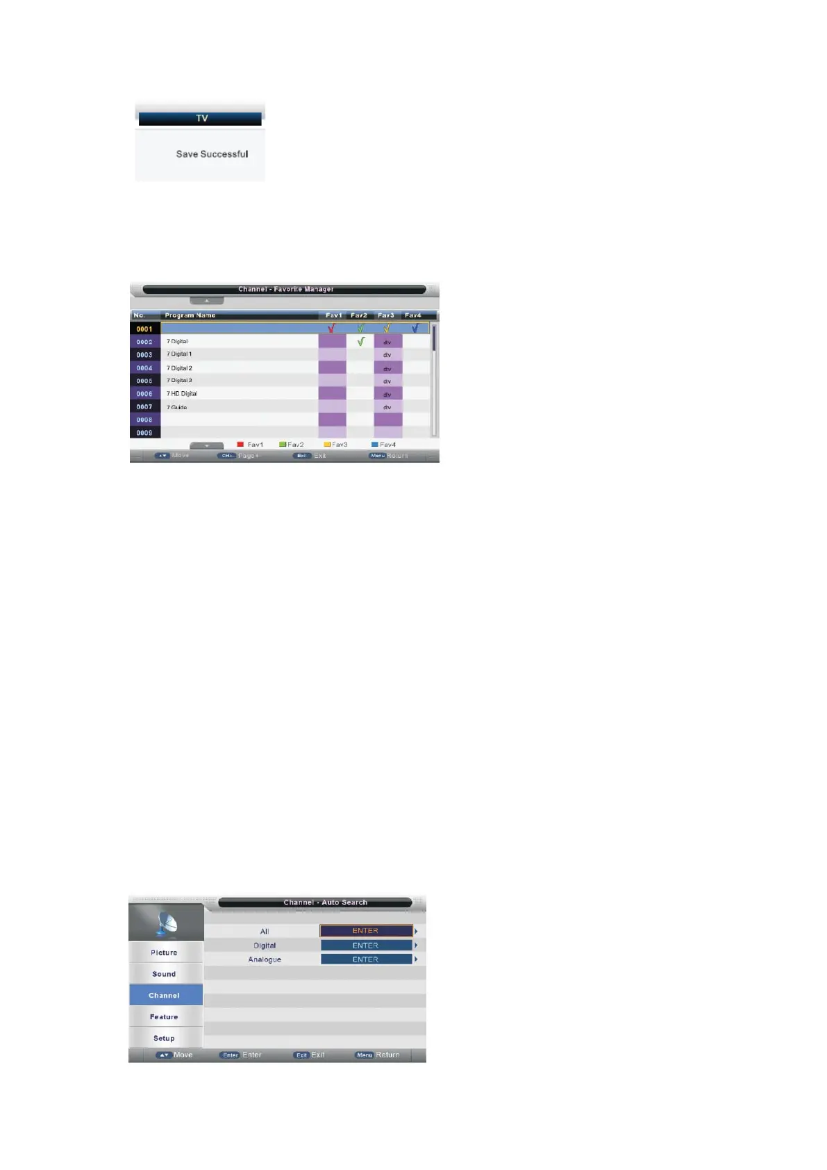 Πατήστε ▲/▼ για να επιλέξετε κανάλι και πατήστε το ΜΠΛΕ κουμπί για να το ρυθμίσετε σε