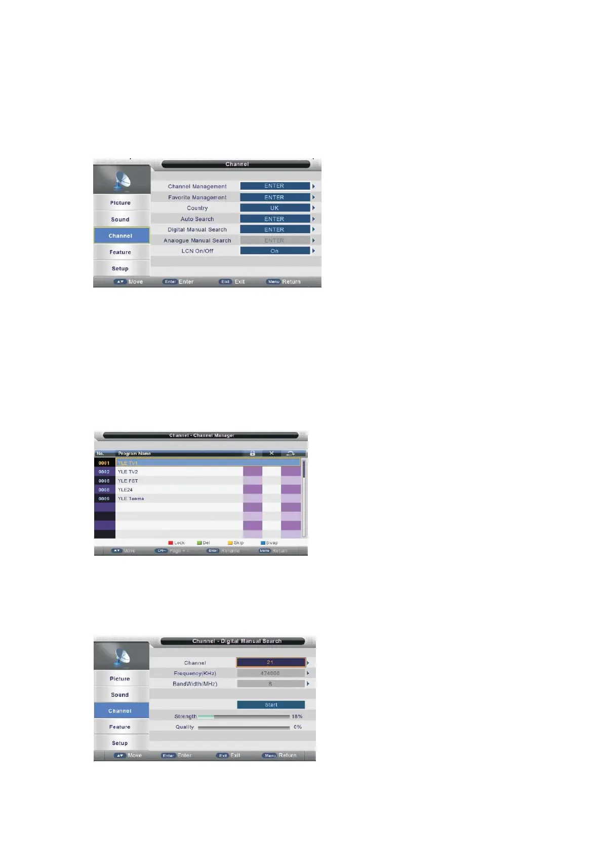 Πατήστε ▲/▼ για να επιλέξετε "Κανάλι" από το κύριο μενού και στη συνέχεια πατήστε