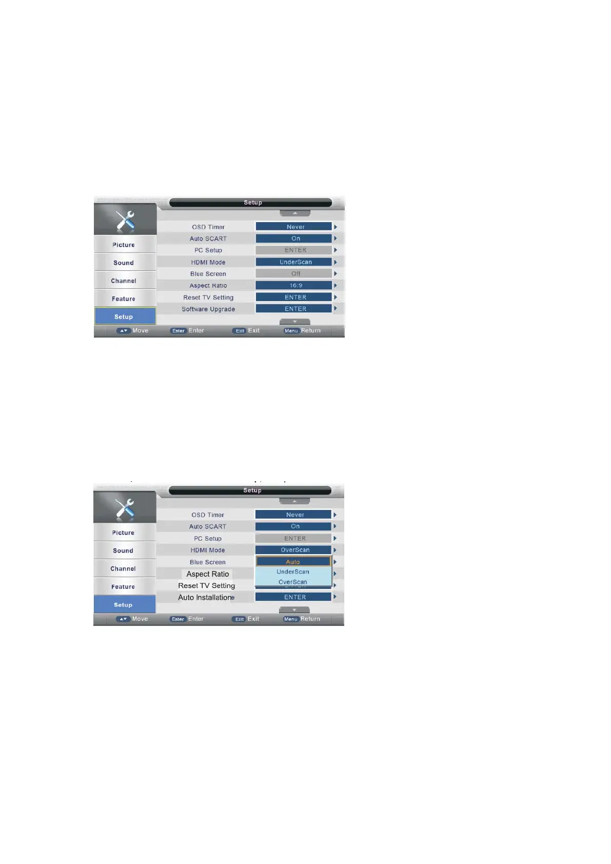 επιστρέψετε στο προηγούμενο μενού ή πατήστε EXIT για να κλείσετε ολόκληρο το μενού.