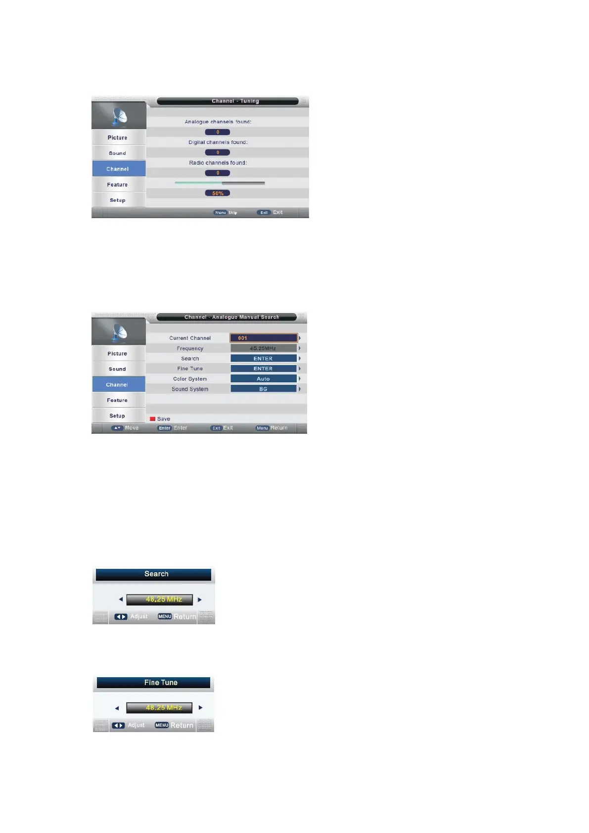 Press ▲/▼ button to select Analog Manual Search, then press ENTER or ► button