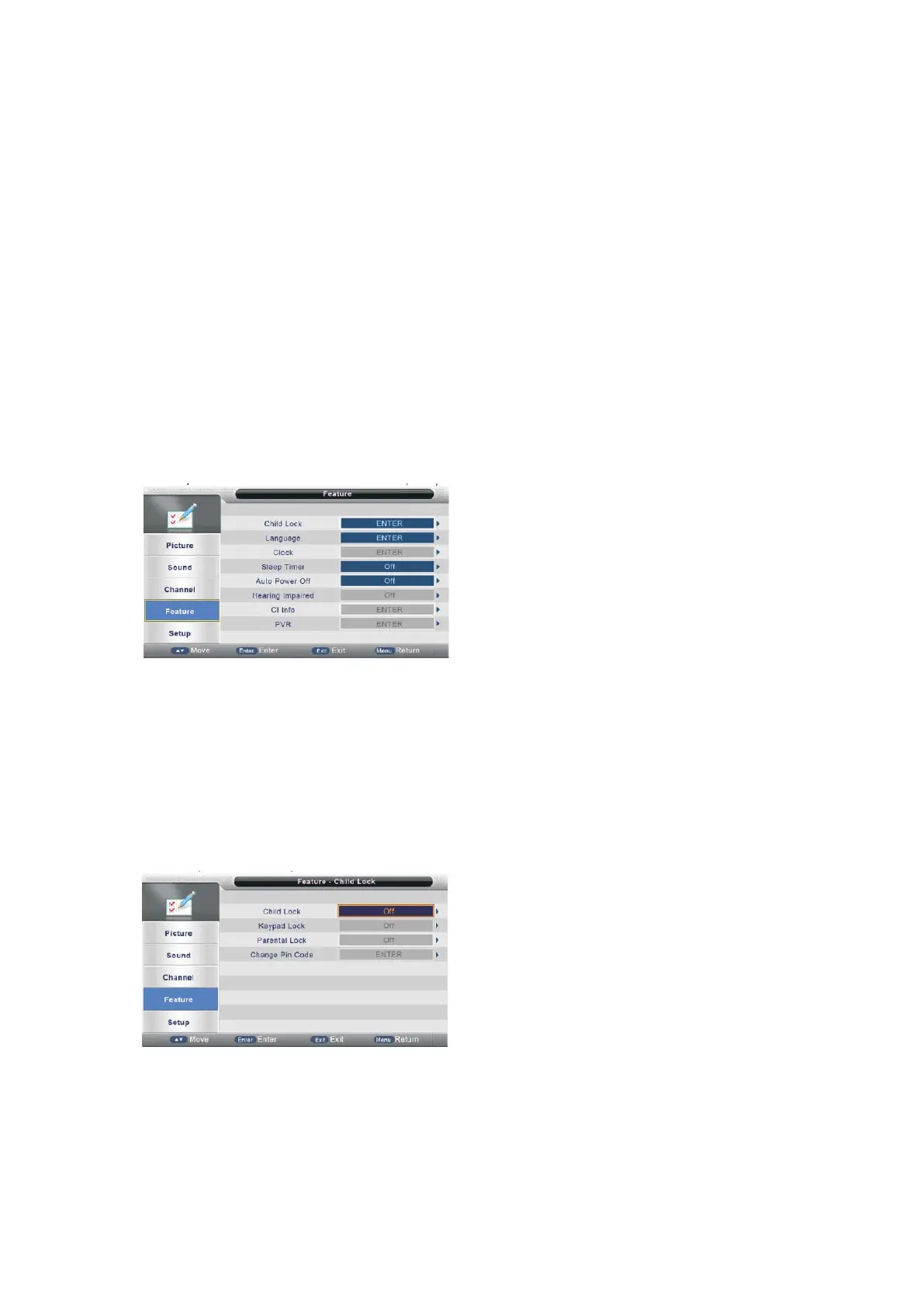 Press ▲/▼ button to select Child Lock, then press ENTER or ► button to enter.