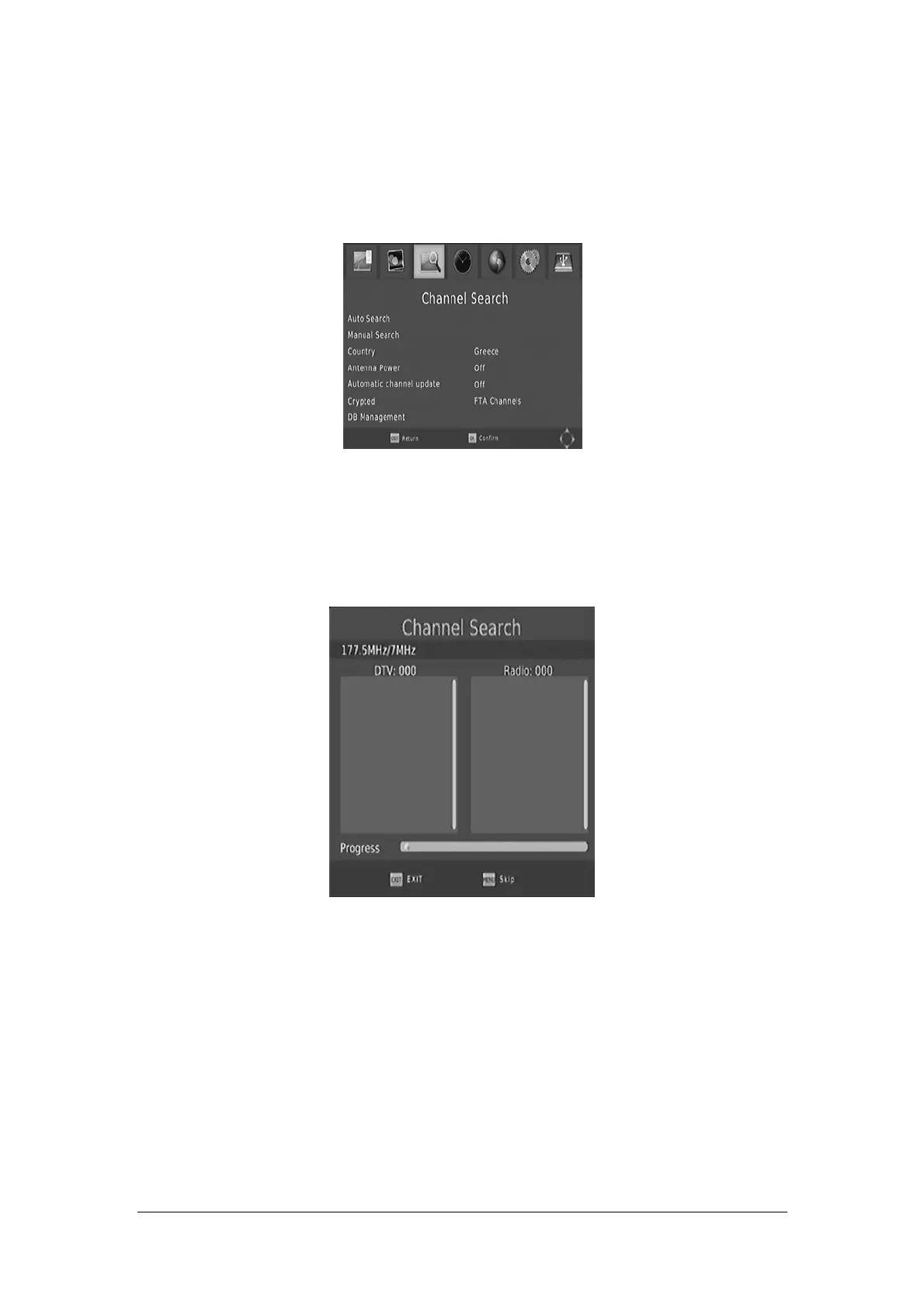 1. Select [Auto Search] and press OK or RIGHT to start channel search