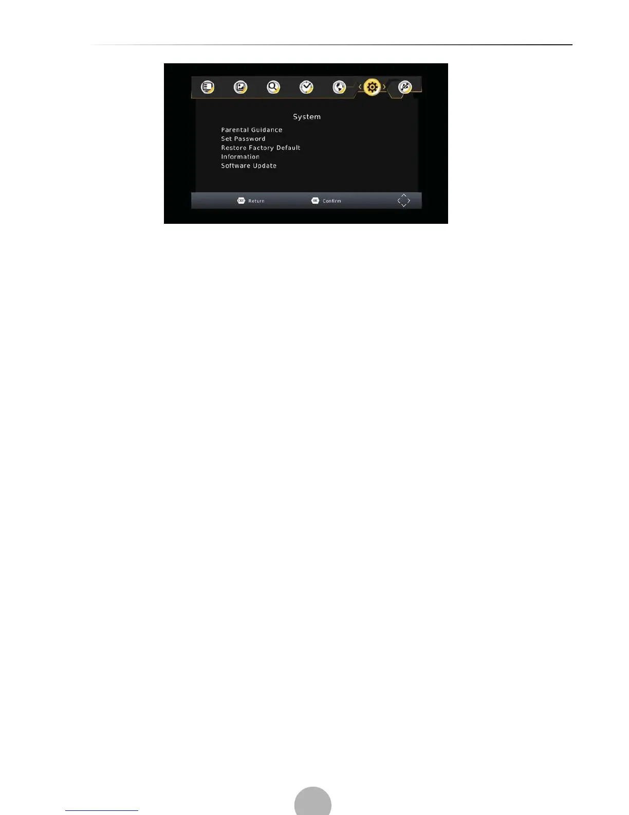 In Main Menu select [Restore Factory Default] using the RIGHT/LEFT keys and press OK or RIGHT to select.