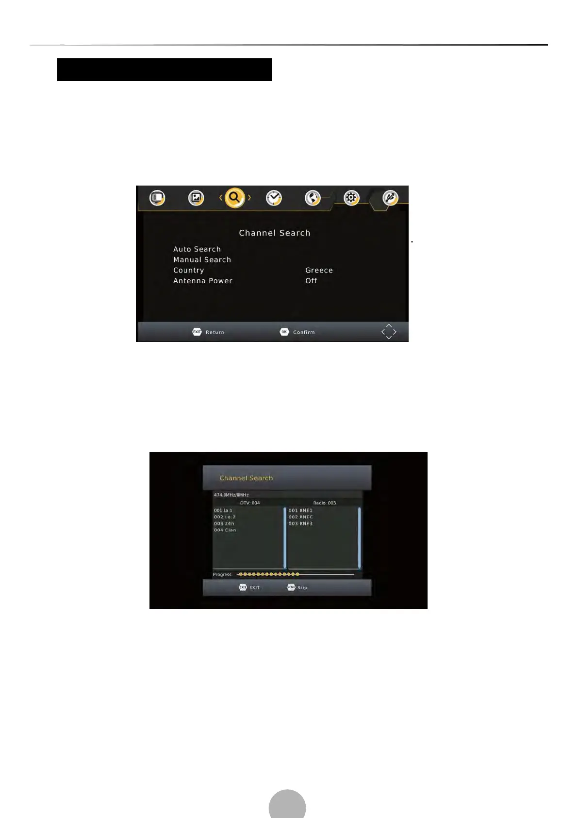 1.Select [Auto Search] and press OK or RIGHT to start channel search.