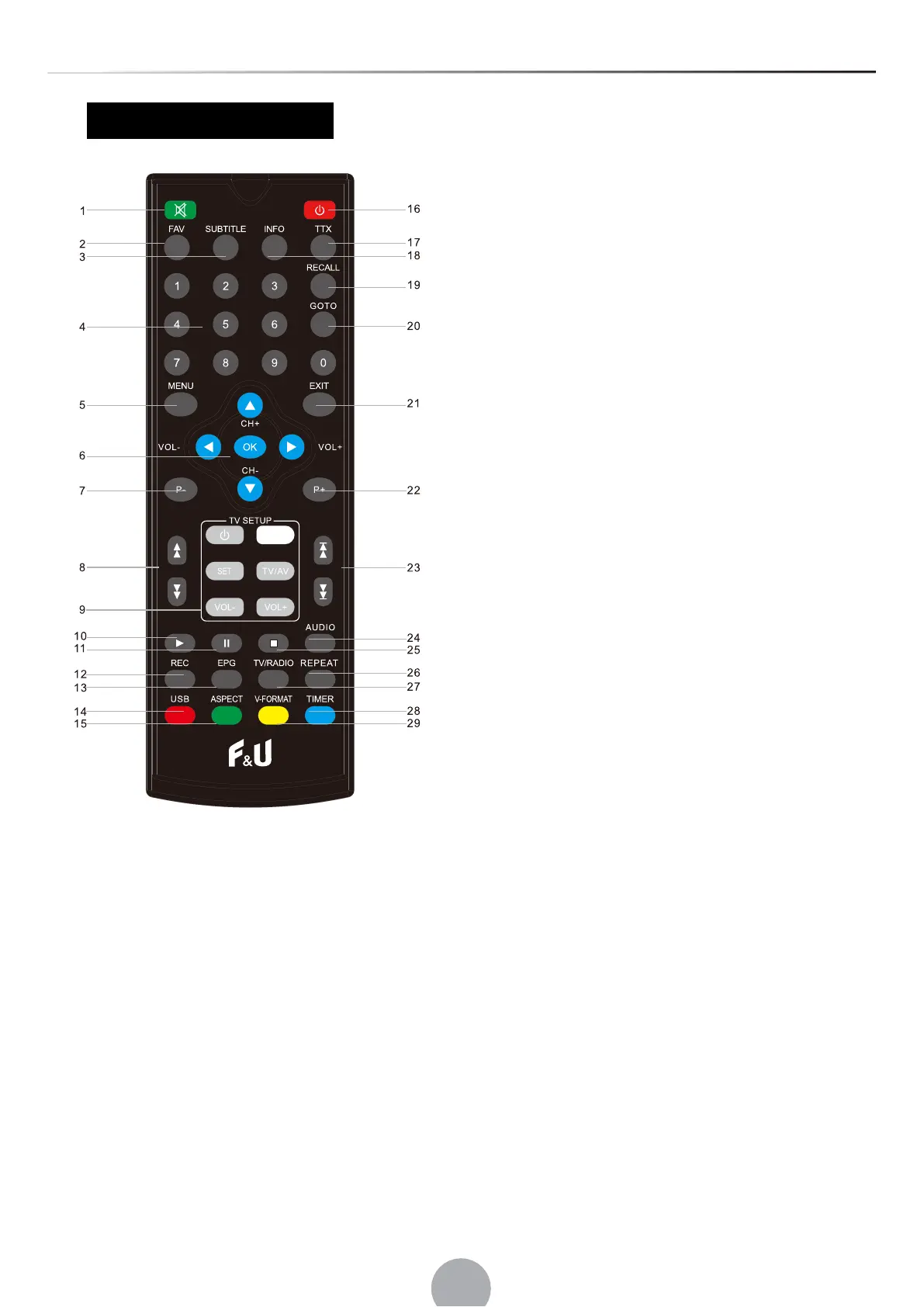 9.TV SETUP:POWER/SET/TV/AV/VOL-/VOL+