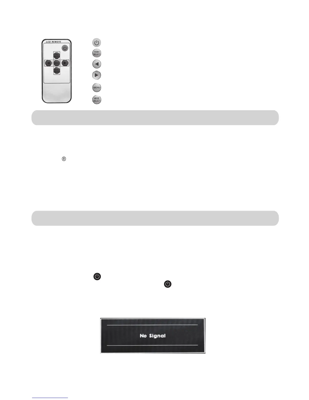 red and a ”No Signal” message will temporarily appear on screen (as shown below) .A