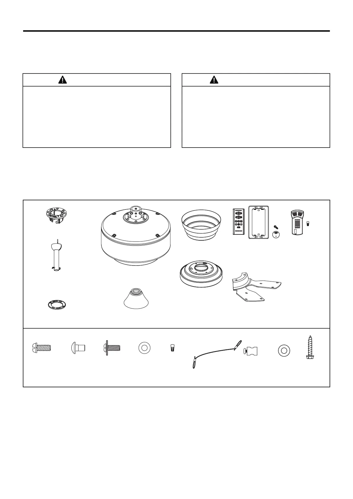 No instale ni utilice el ventilador si falta alguna pieza o si