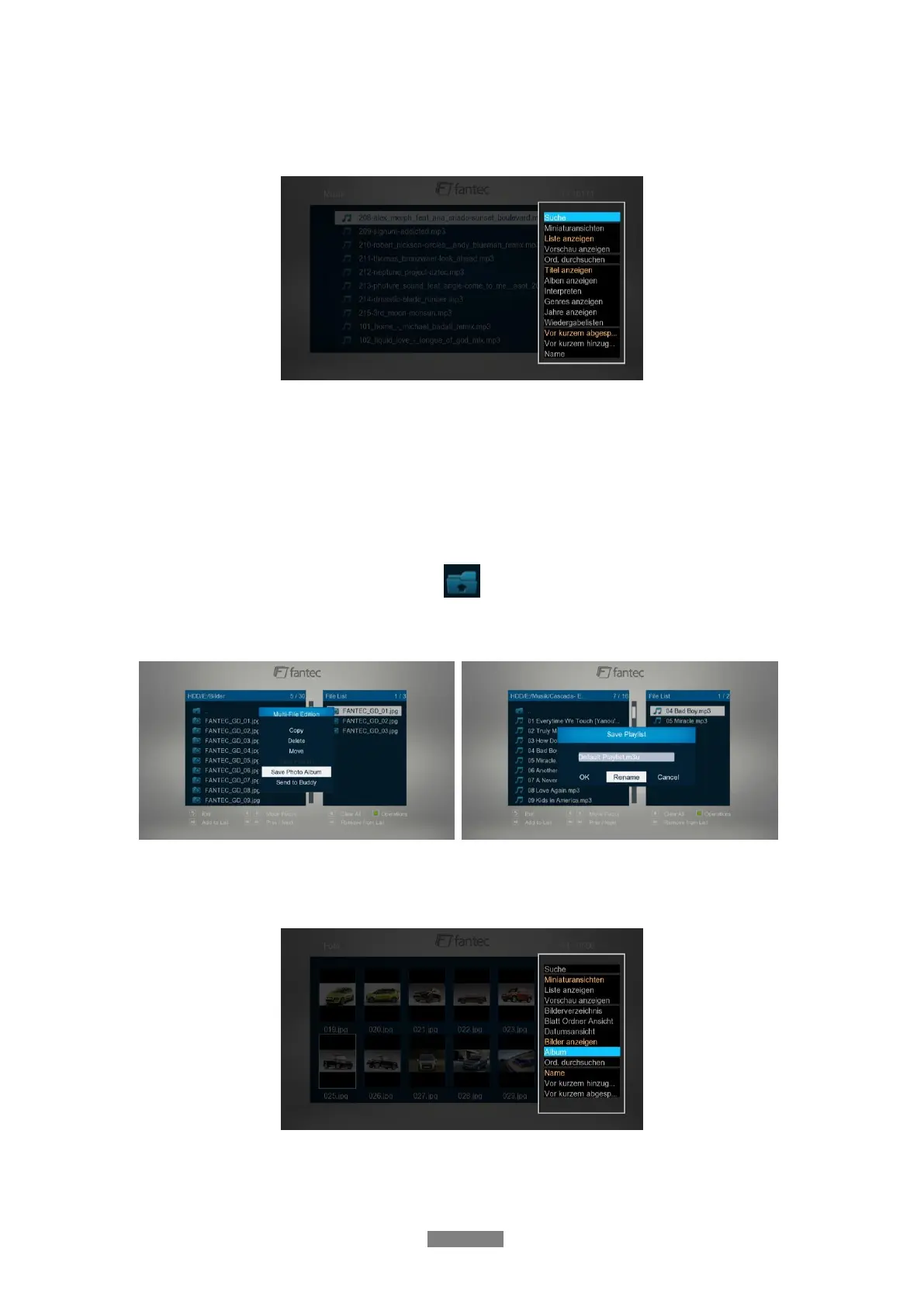 To create an album playlist, please enter the HDD via File Manger. The press the green