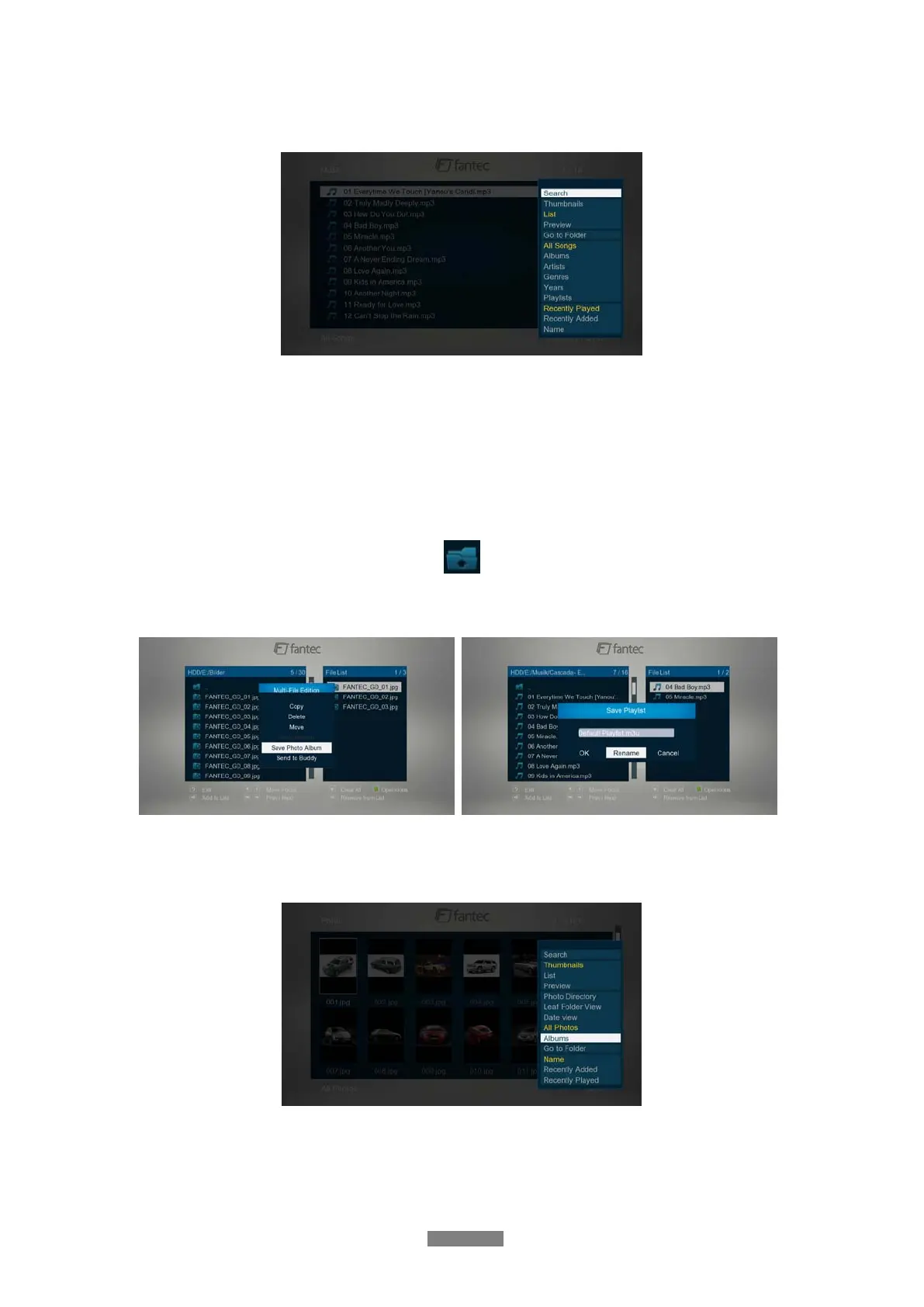 To create an album playlist, please enter the HDD via File Manger. The press Edit button on