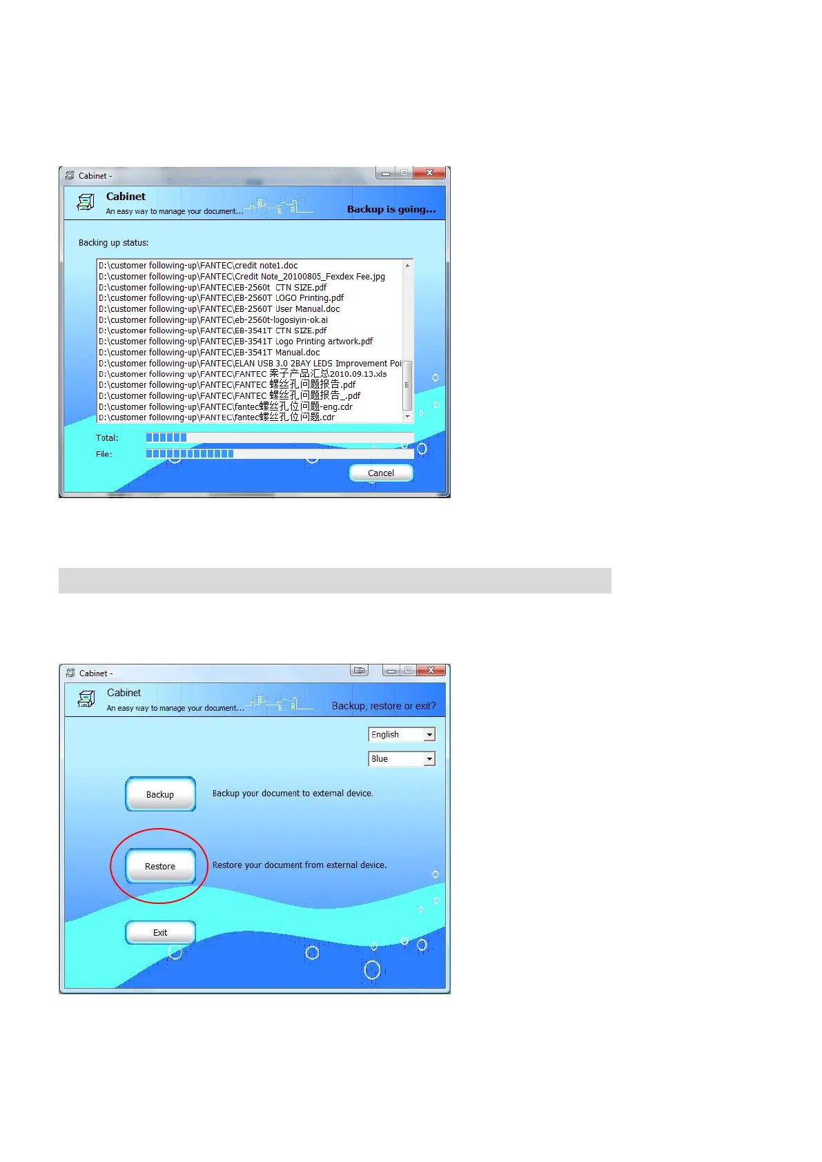 Fantec DB-AluSky U2e - Restore Data from FANTEC Device; Click the Restore button