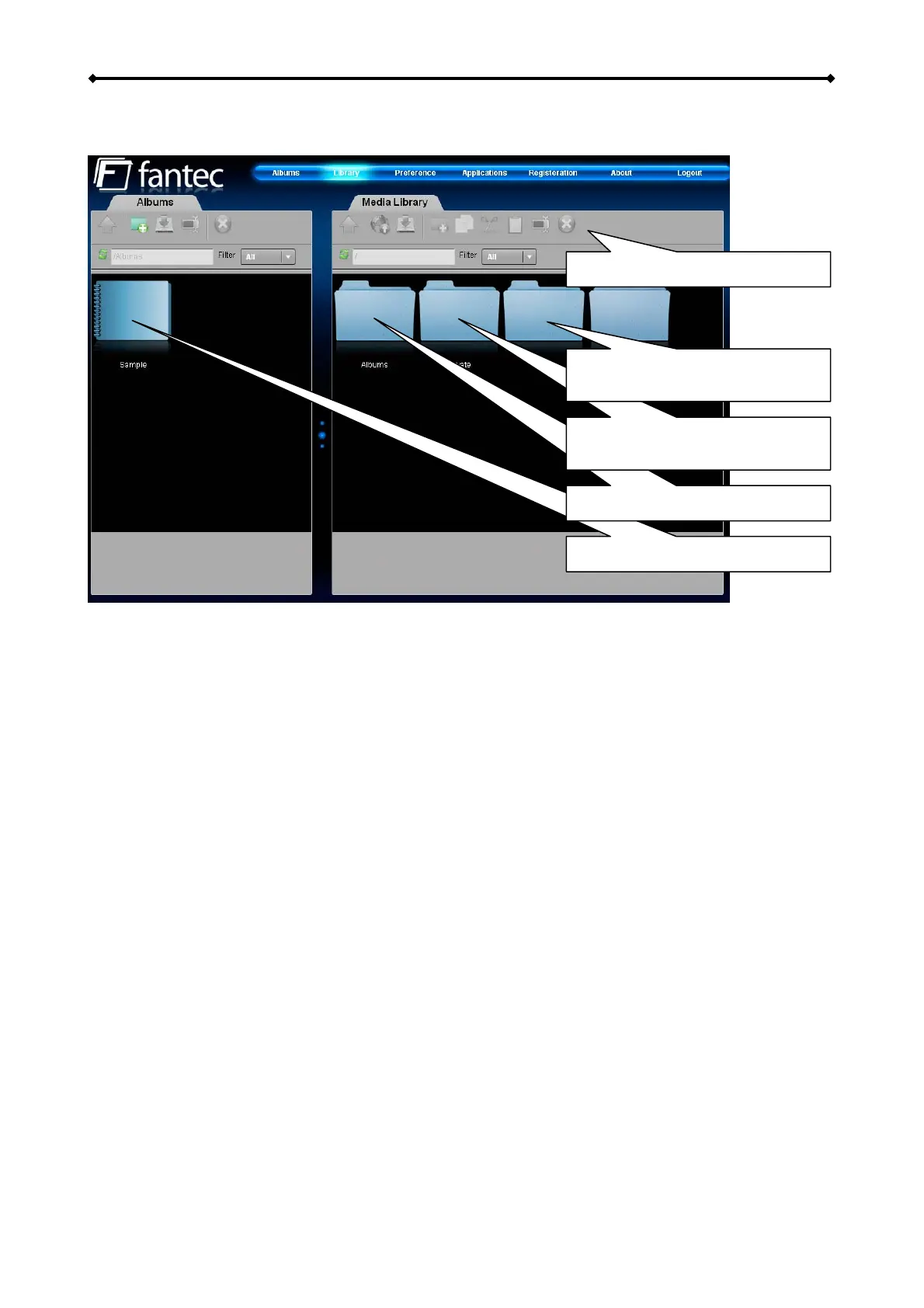 The Media Library can be used to manage your media files on the NAS. Files can be uploaded,