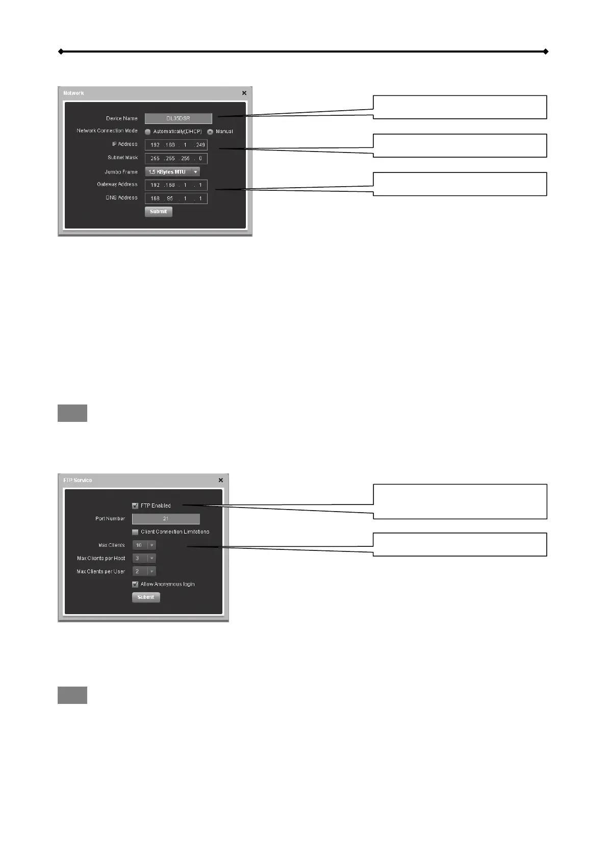 After changing any of the settings, click Submit to save the new configuration.
