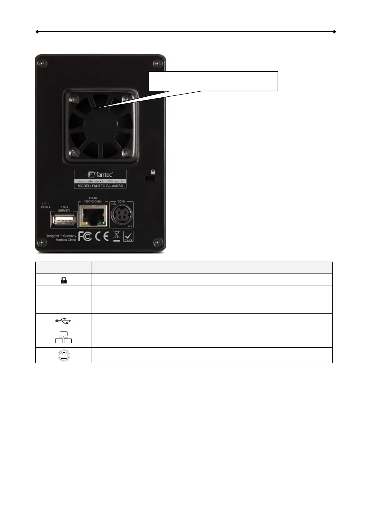 Fan (40 mm) for cooling of hard disks.