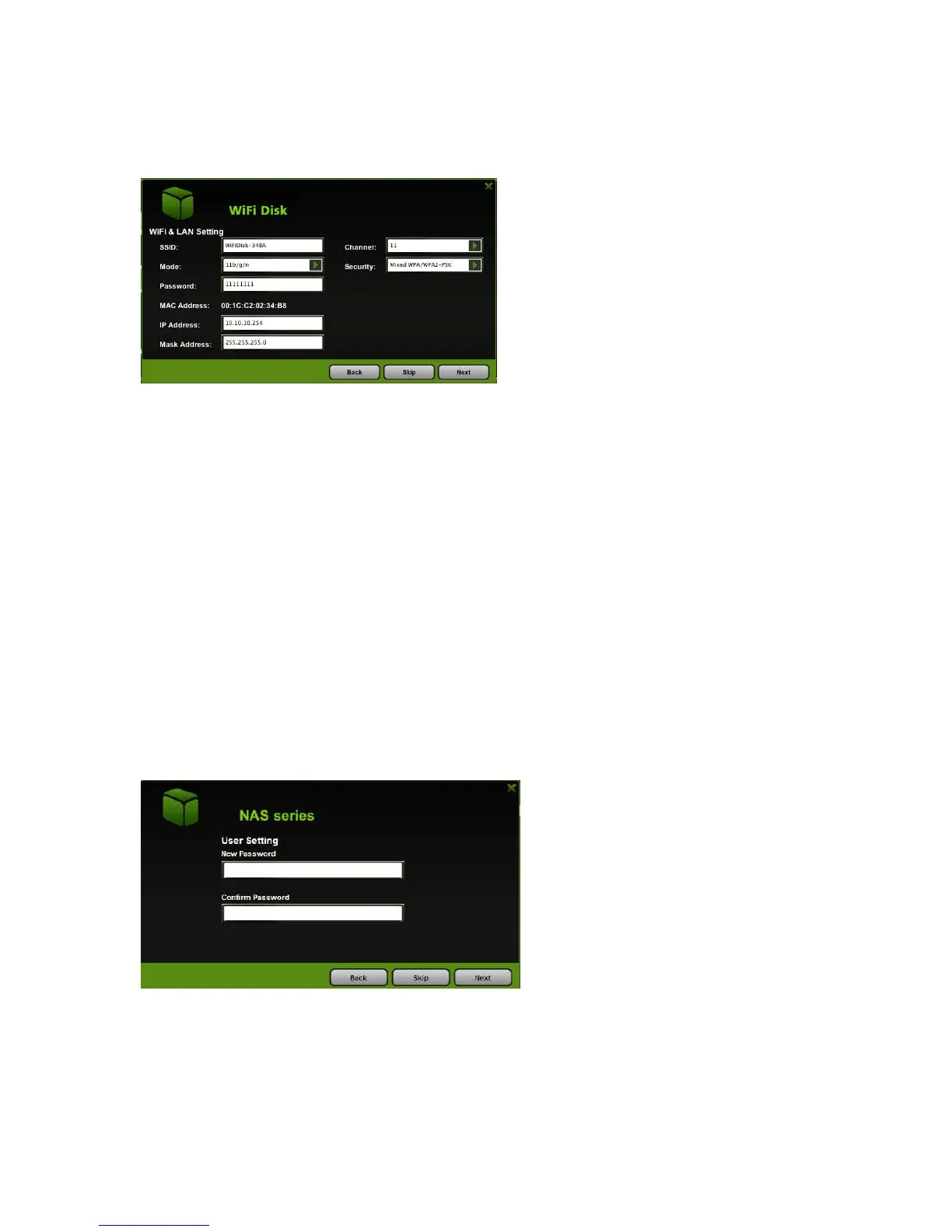 the “Skip” button to keep the default password.