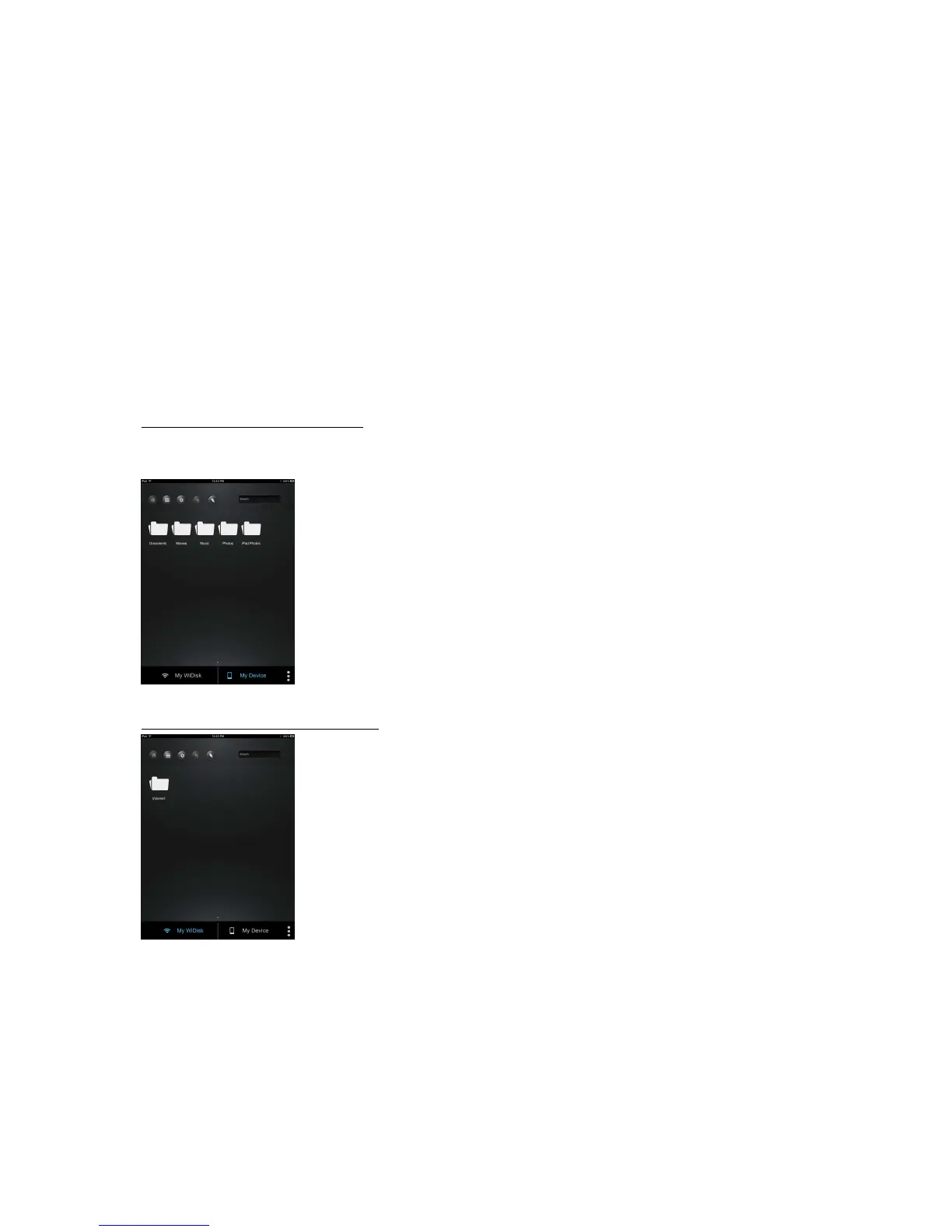 My Device Main Screen View – By default, the Documents folder, Music folder, Photos