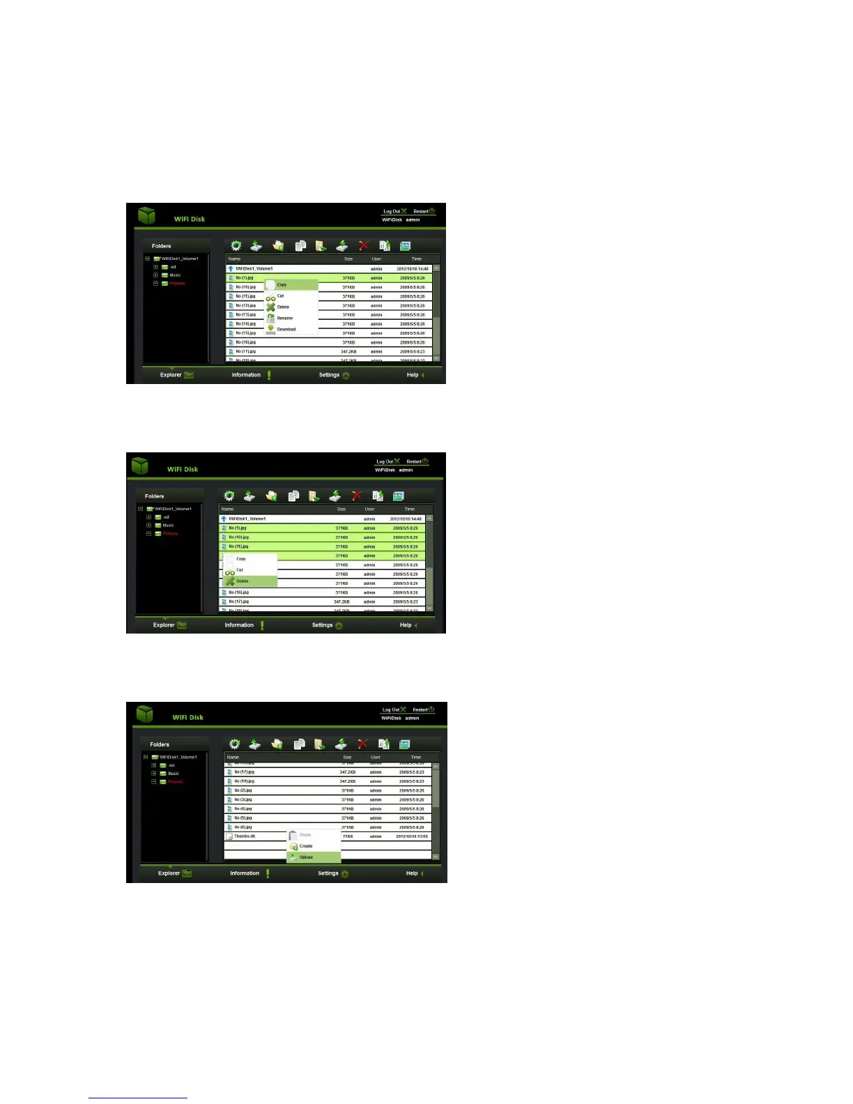 appear. You can Open, Copy, Cut, Delete or Rename the folder as seen on the