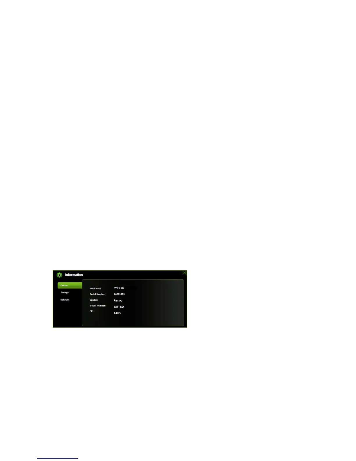 Provides information about the Host Name, Device’s Serial Number, Manufacturer Name,