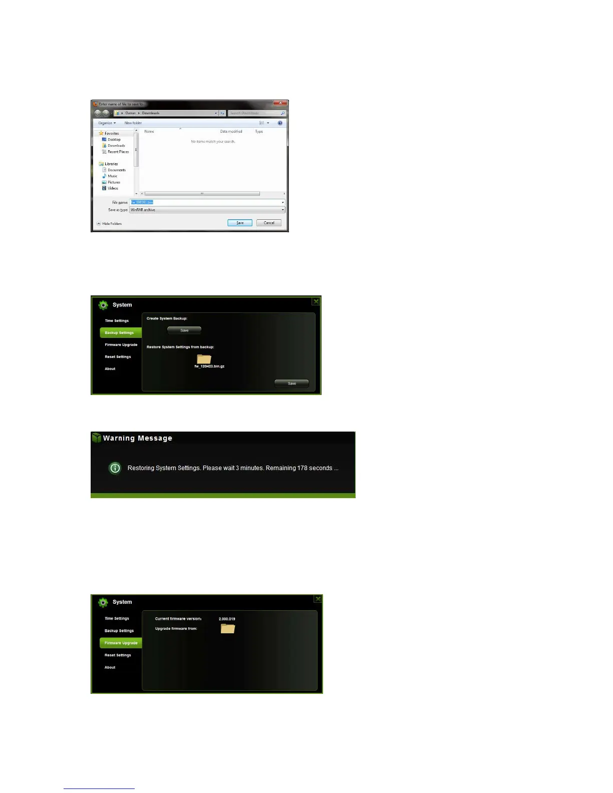 To restore the backup, click the folder icon. Locate and select the .bin or .bin.gz file. The