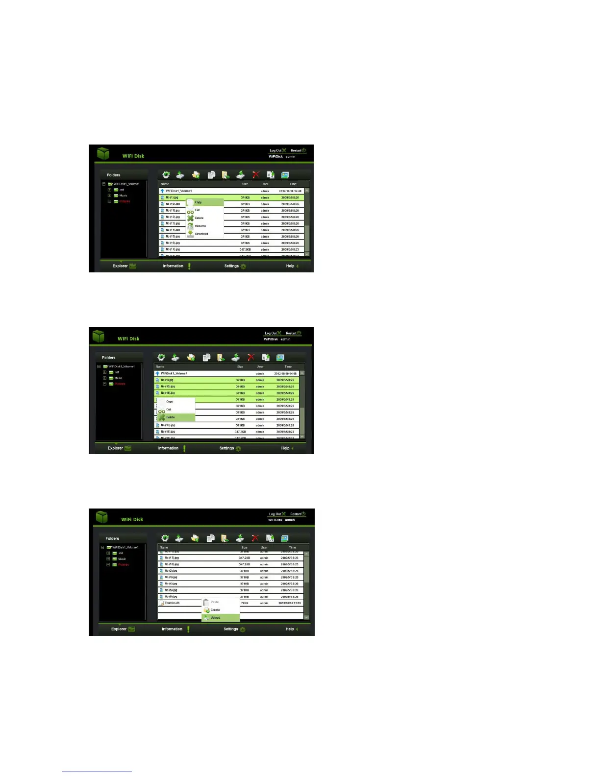 appear. You can Open, Copy, Cut, Delete or Rename the folder as seen on the
