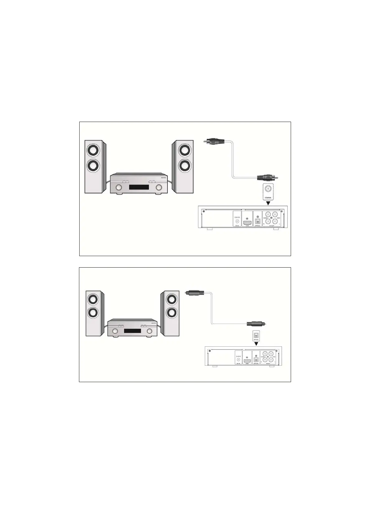 Note: Optical fiber and coaxial cable are not supplied.
