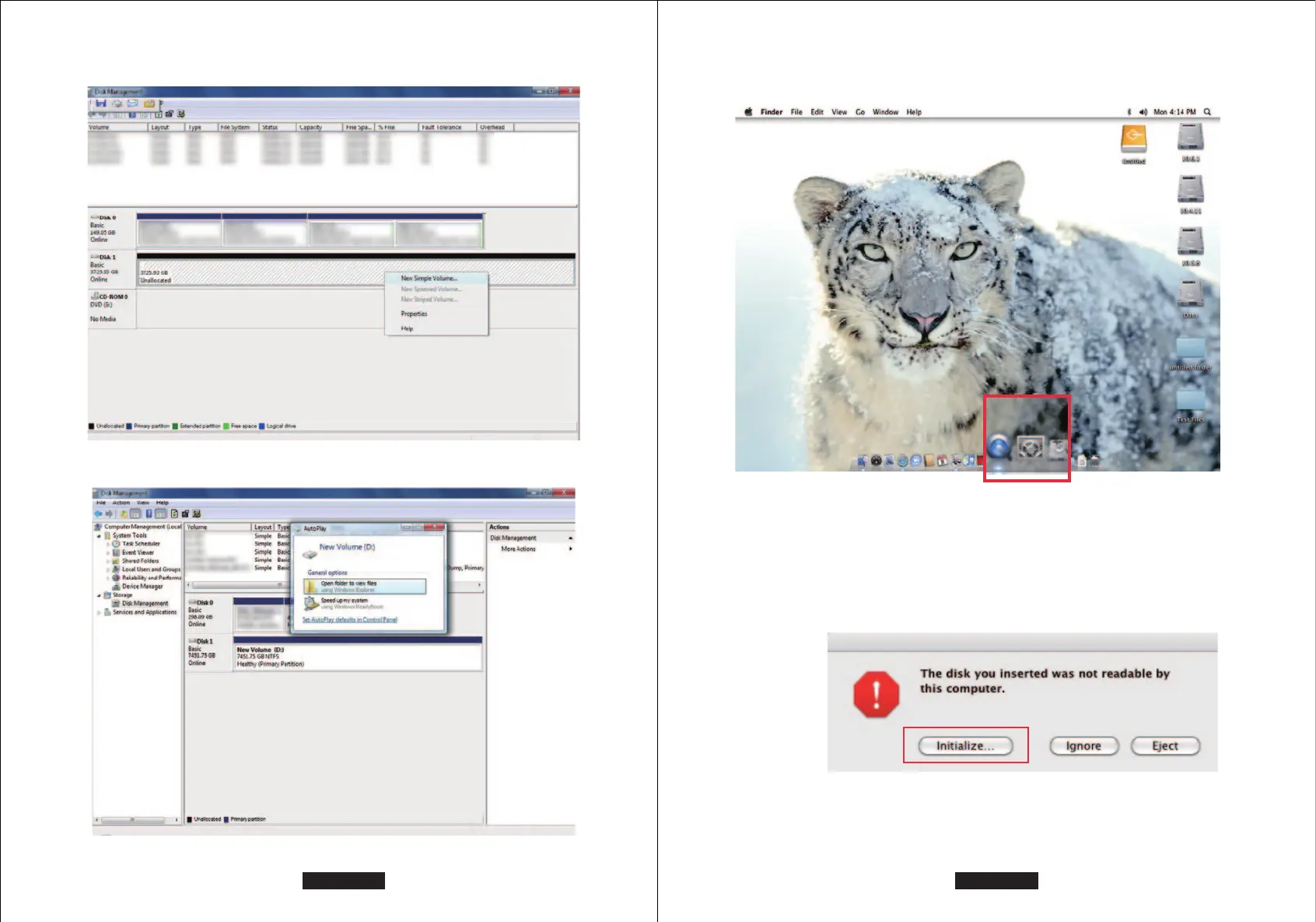 2. Create new partition and format disk.
