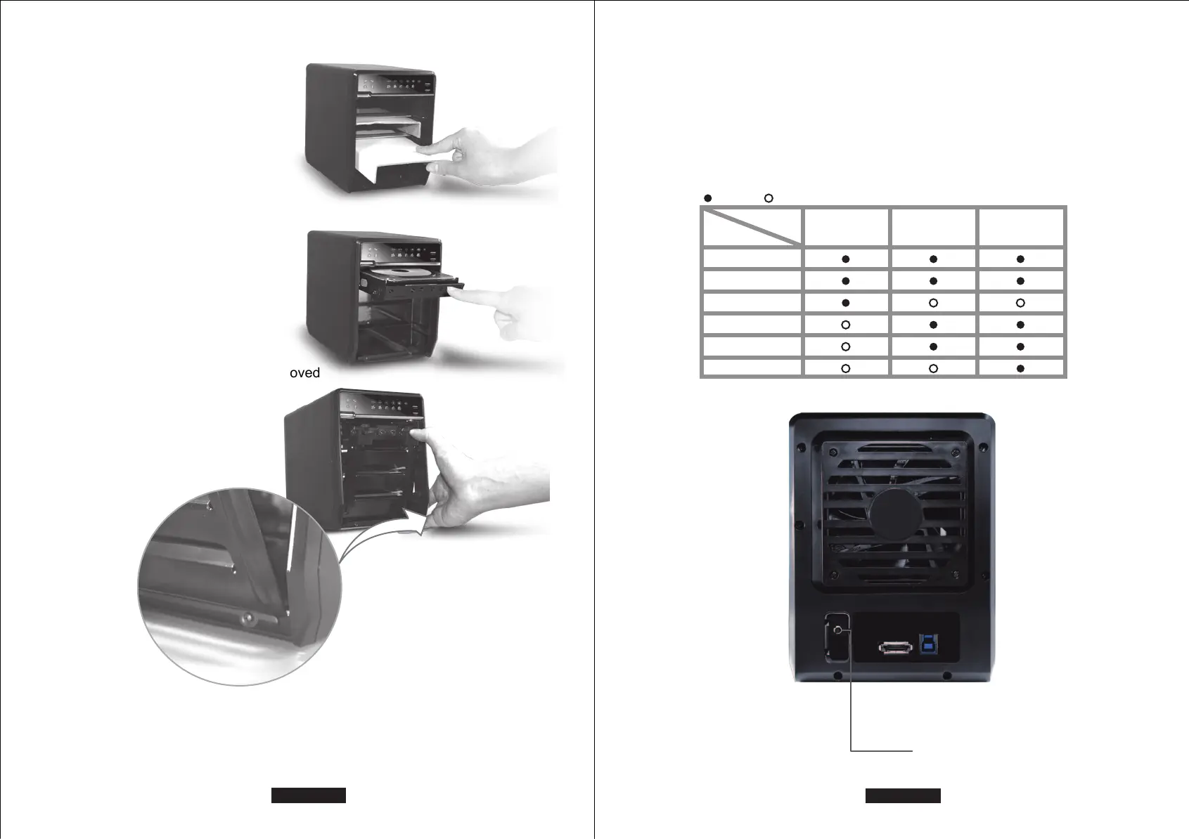 press RAID button for 3 seconds until LED flashes. Press it again, select the RAID mode