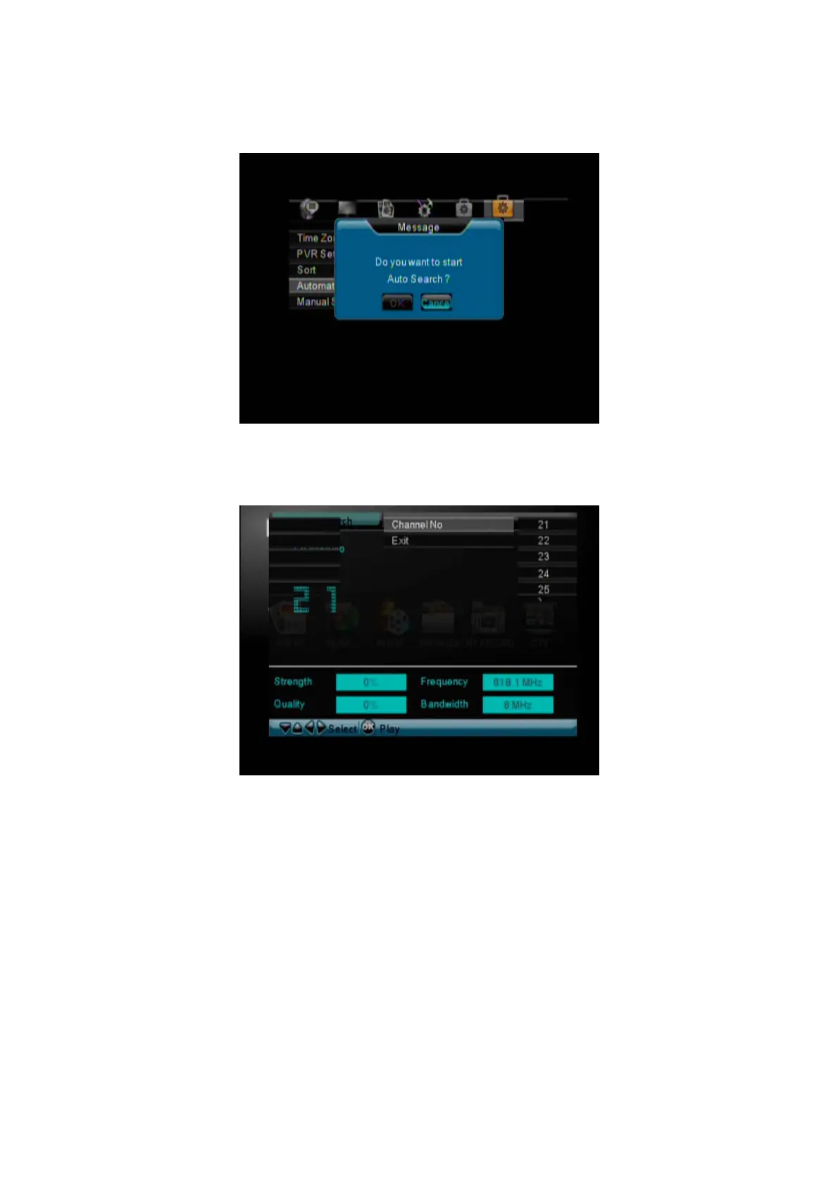 In AUTO SCAN mode, the system will automatically scan for available DVB-T TV channels.