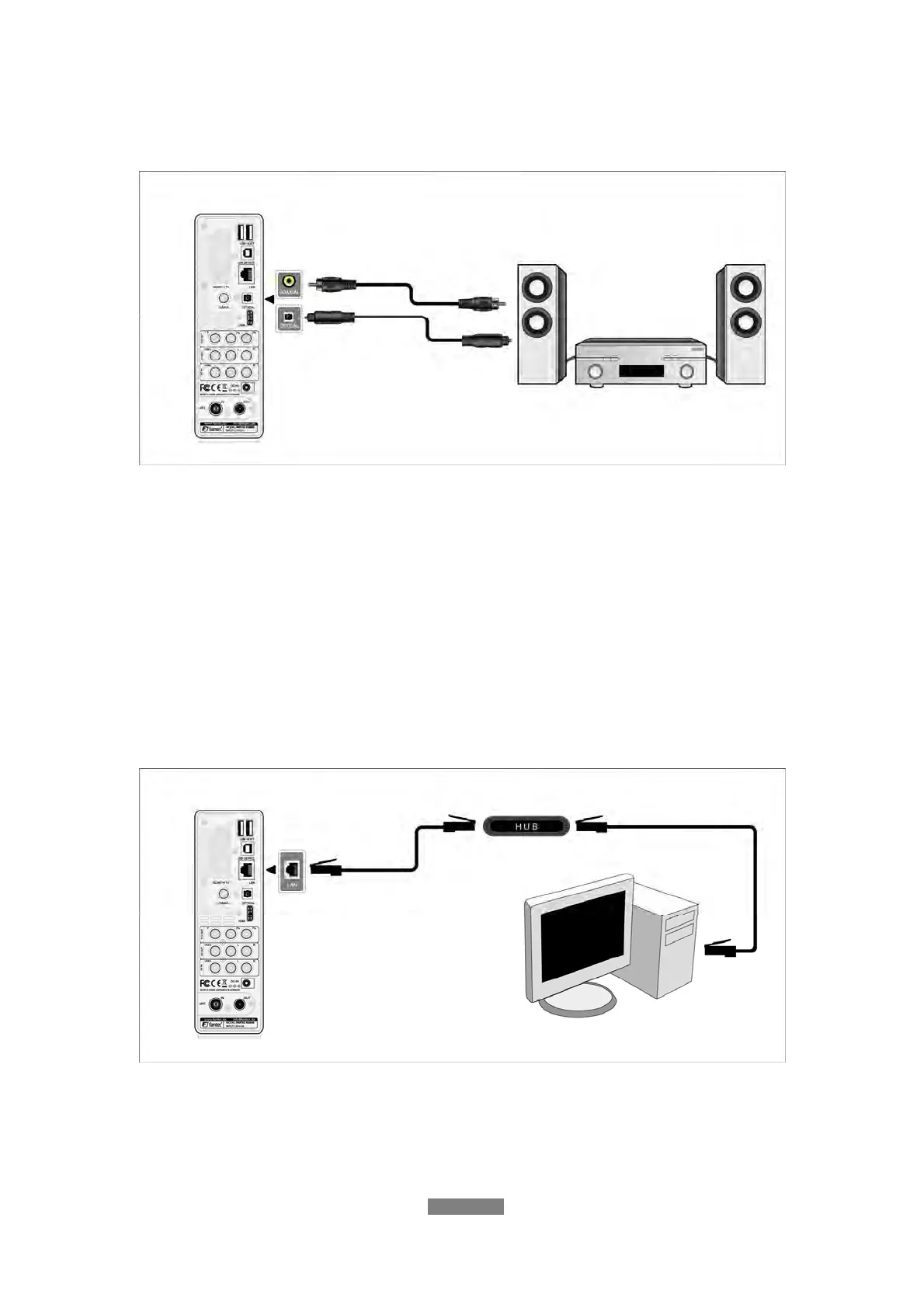 Note: Optical fiber and coaxial cable are not supplied.