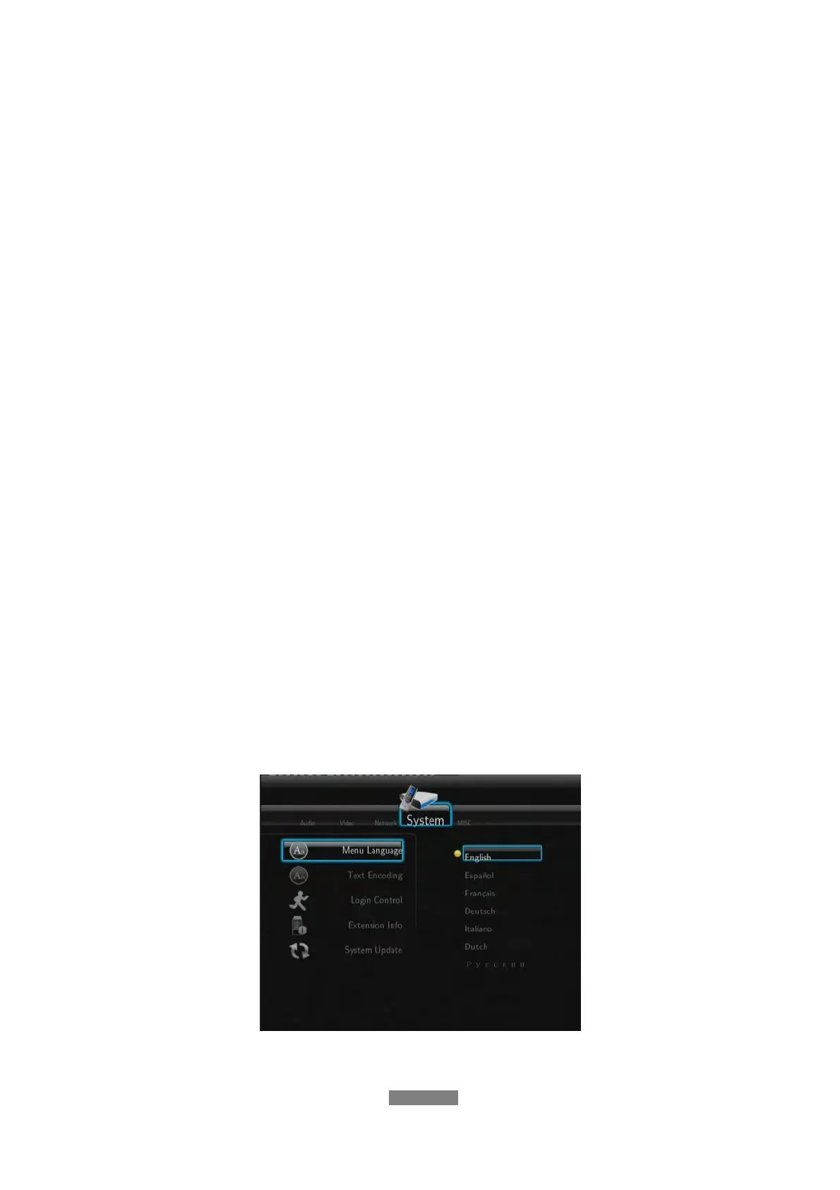 The system language of this player can be set to English or other languages.