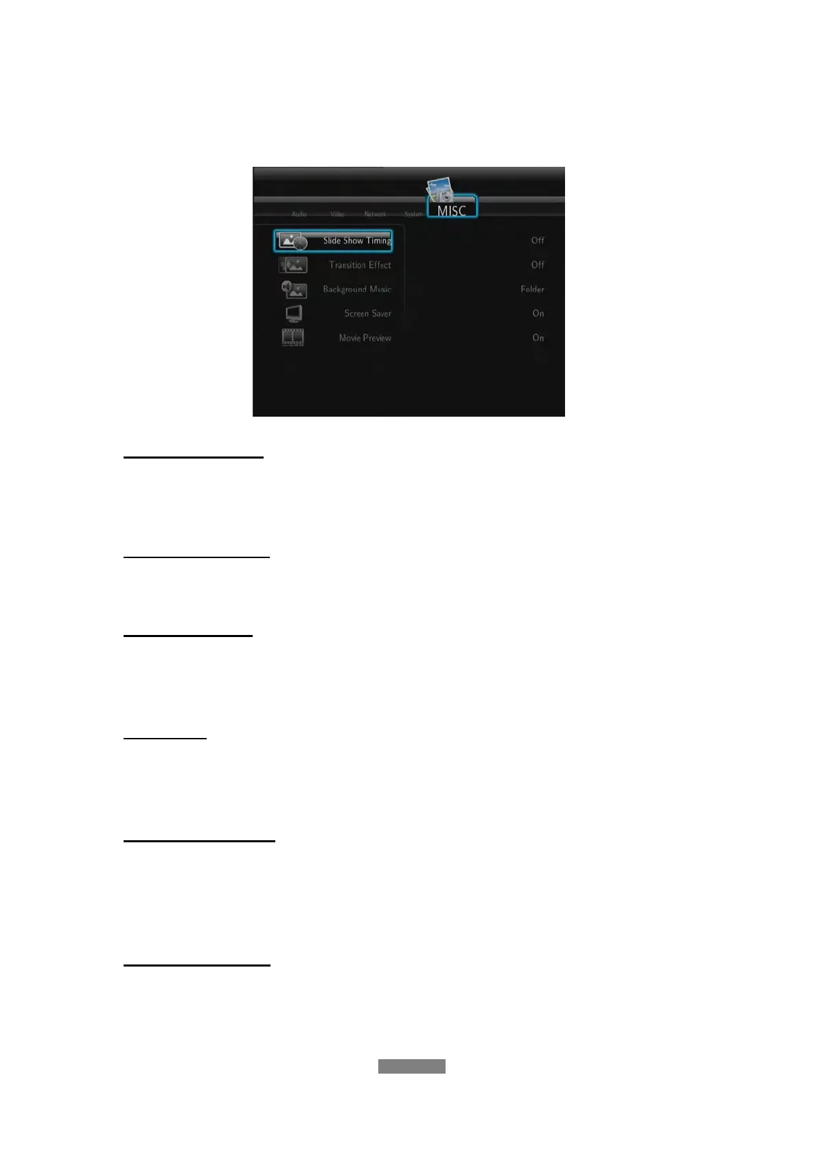 Use this menu to adjust miscellaneous settings.