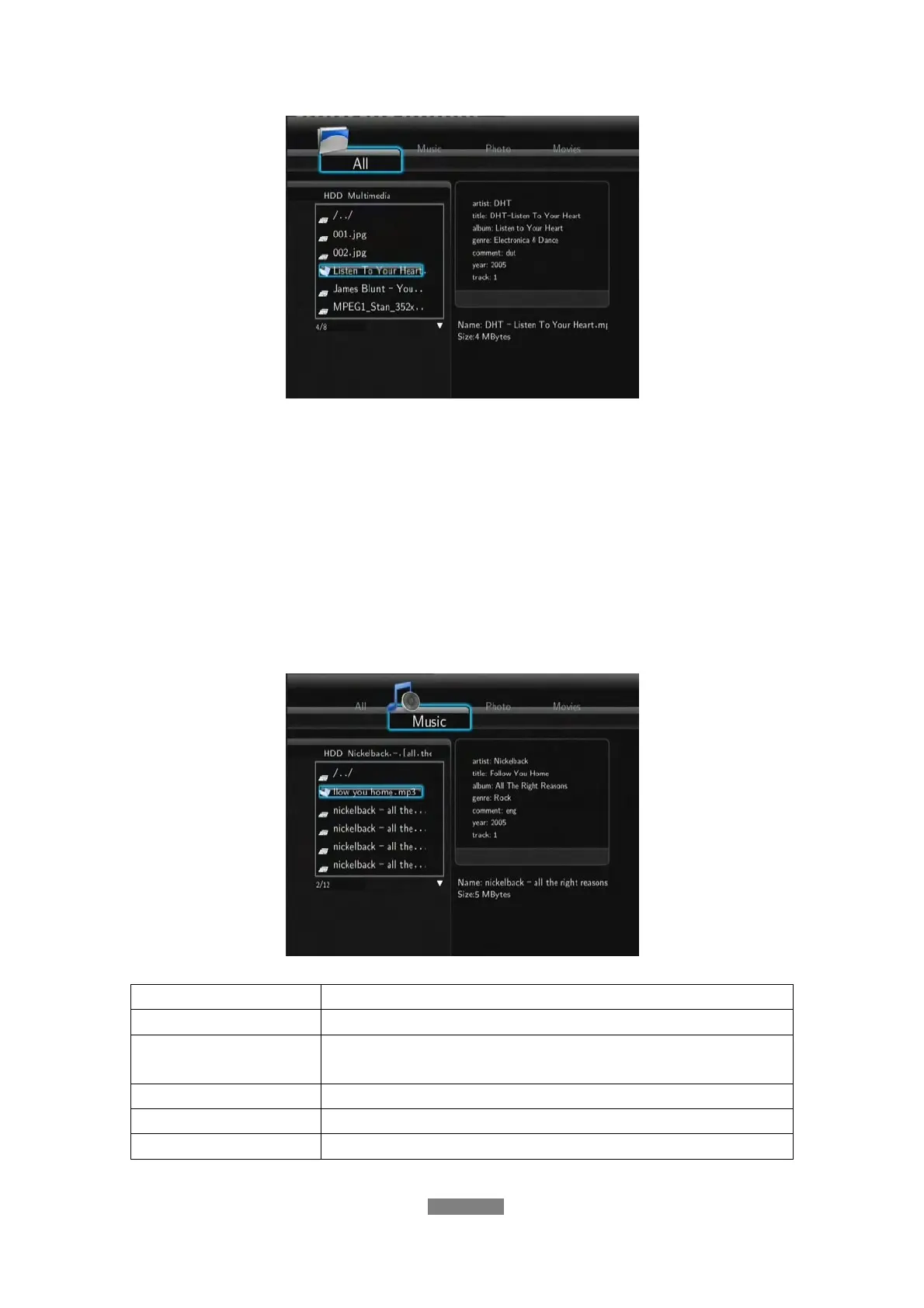 • Muisc tracks might not be able to played continously under All filter, please