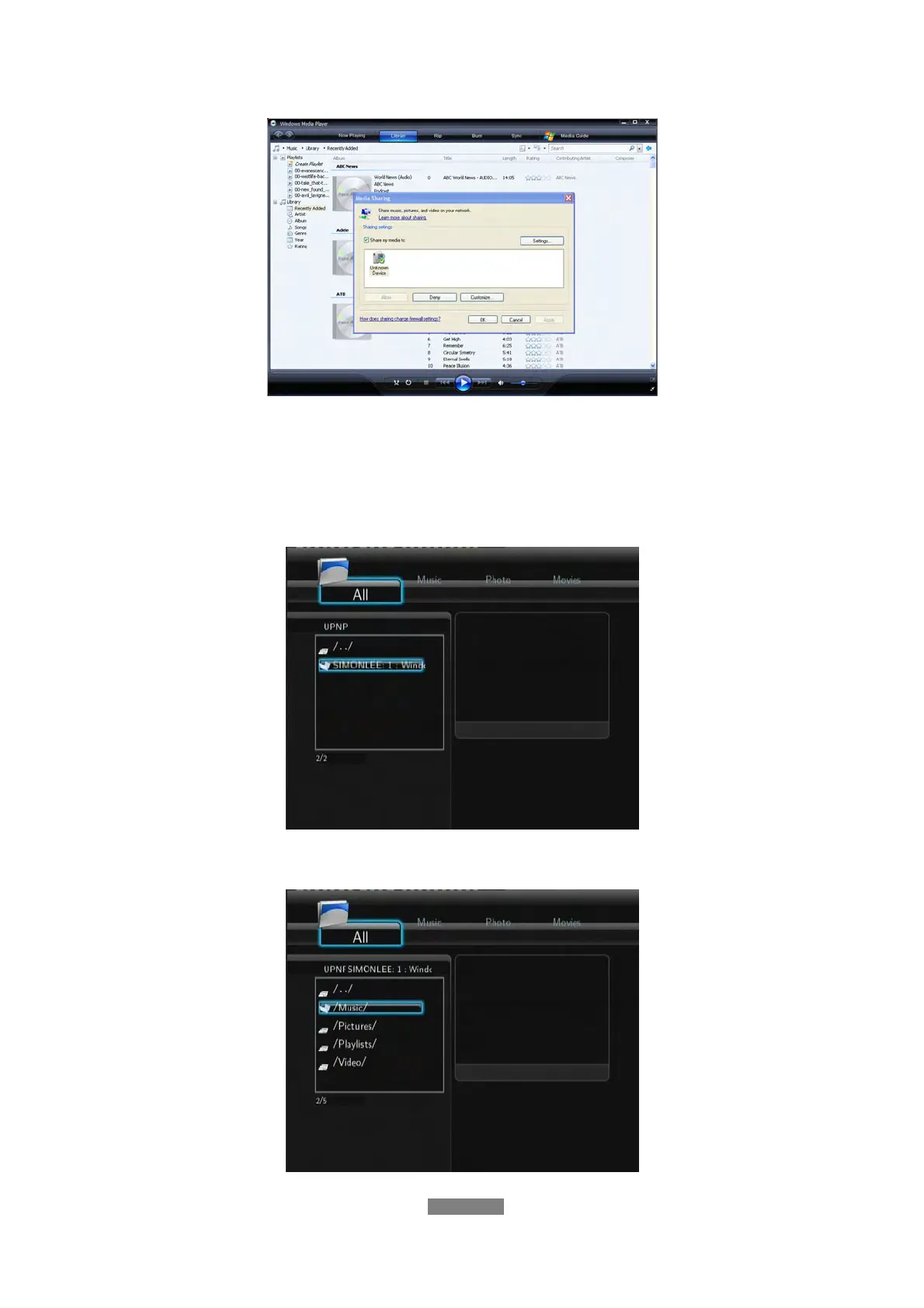 - Then you can browse the media library shared by Windows Media Player