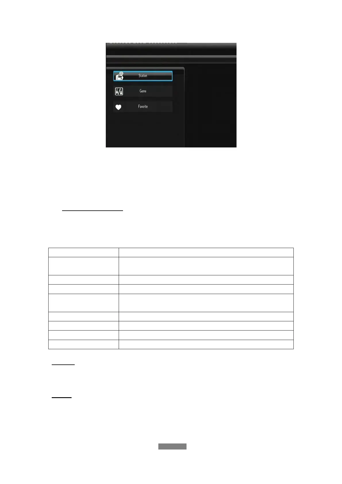 MENU Add or delete a station to or from Favorite list while it is