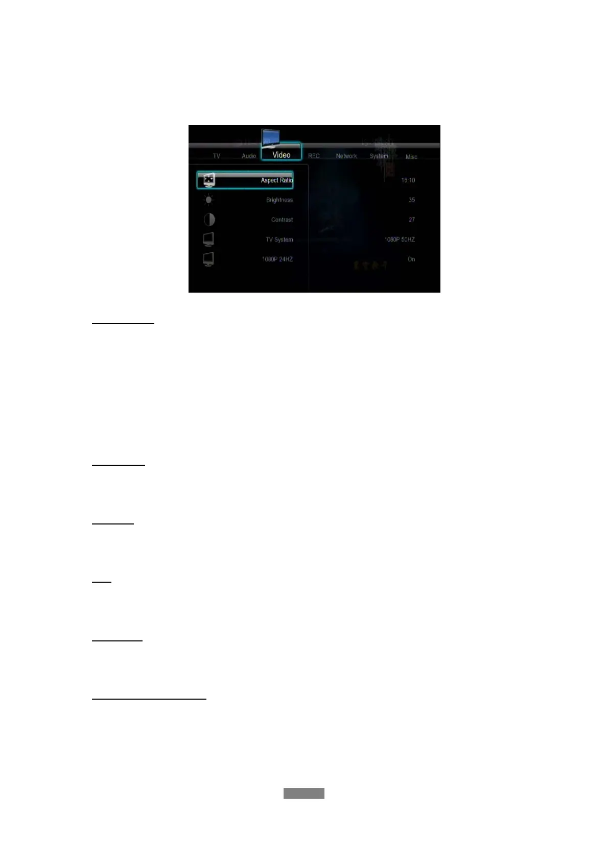 Use this menu to configure video settings.