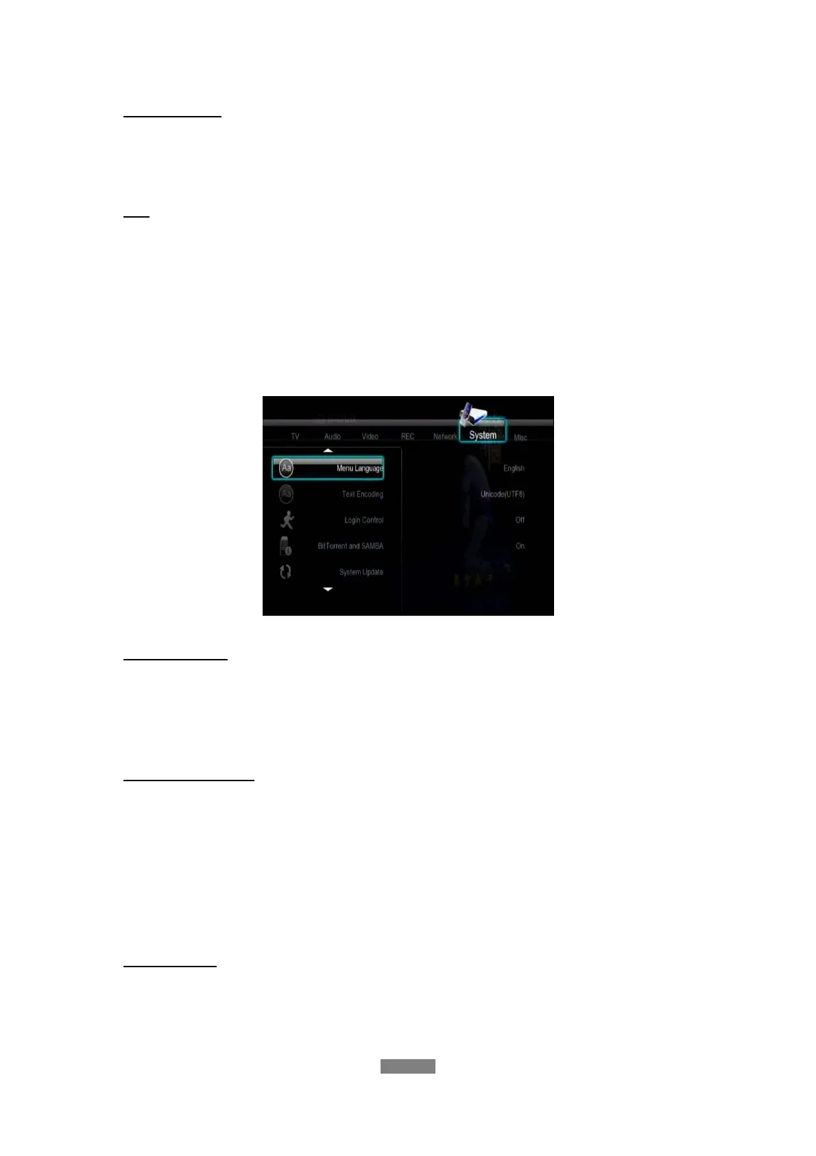- Select to set the text encoding option (subtitle display).