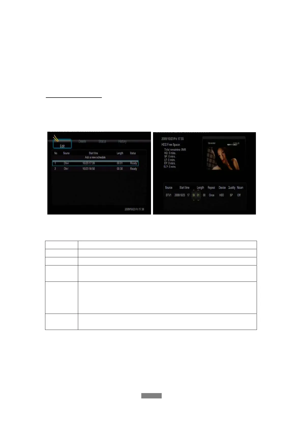 The Timer Record menu allows you to create, edit and delete recording schedules and view