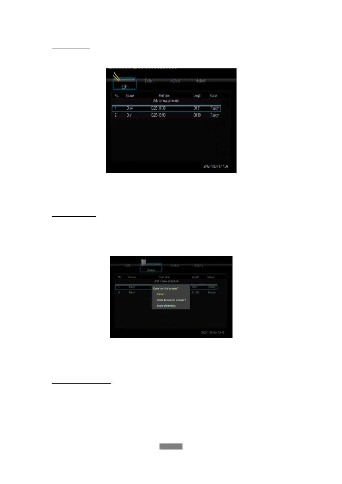 Select CANCEL, Delete the selected schedule, or Delete all schedules. Press the enter