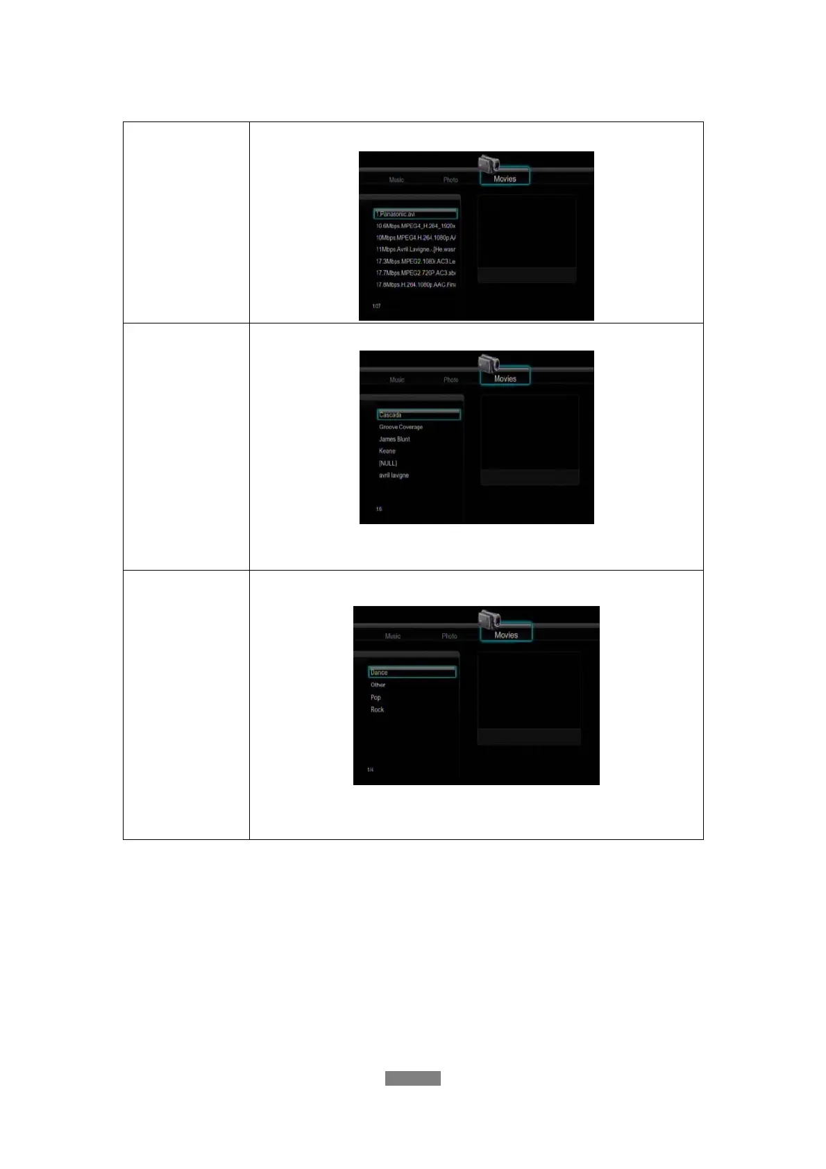 Press the up / down button to select the genre, and press the enter