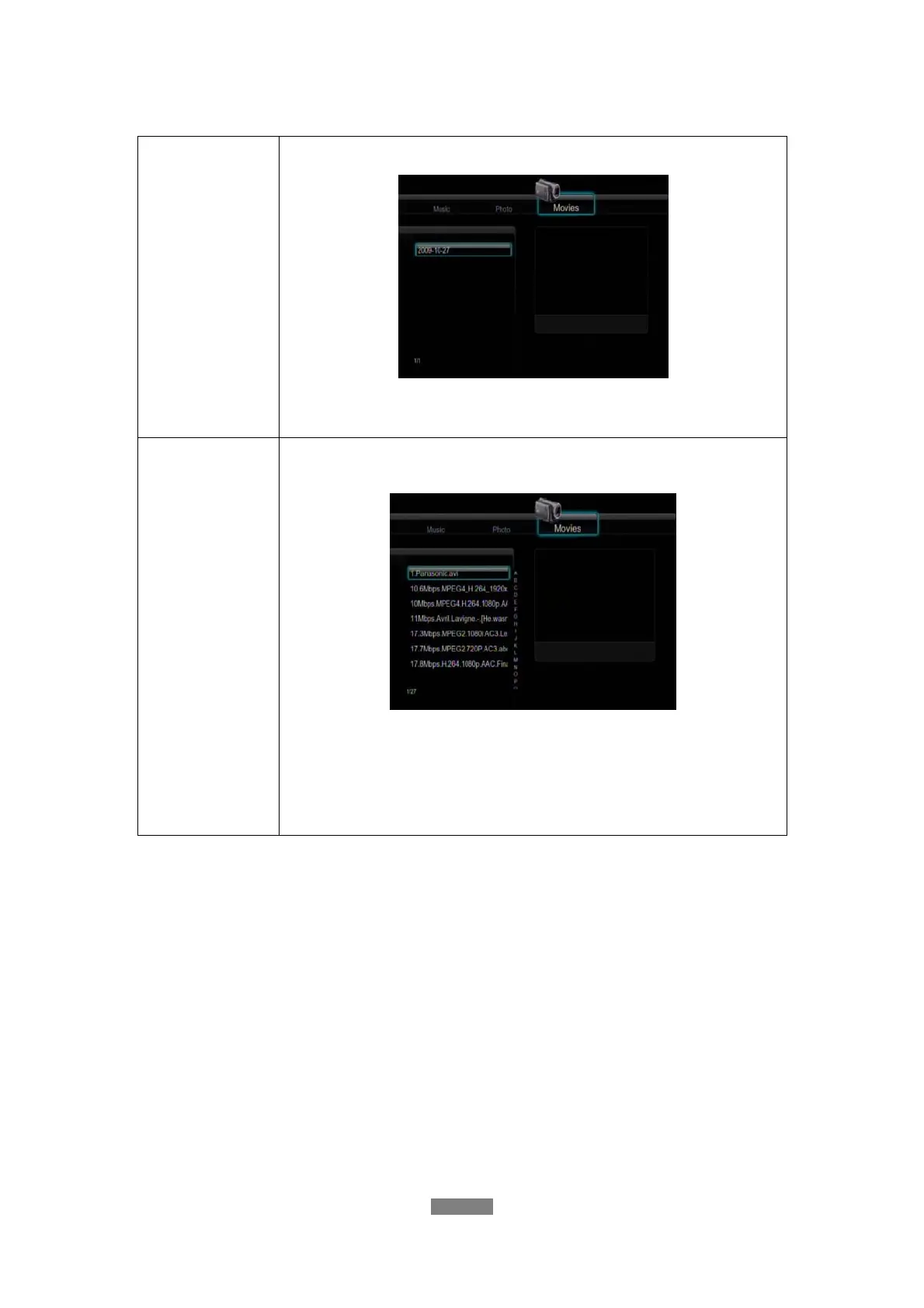 and press the enter button to confirm. The movie files with the specific