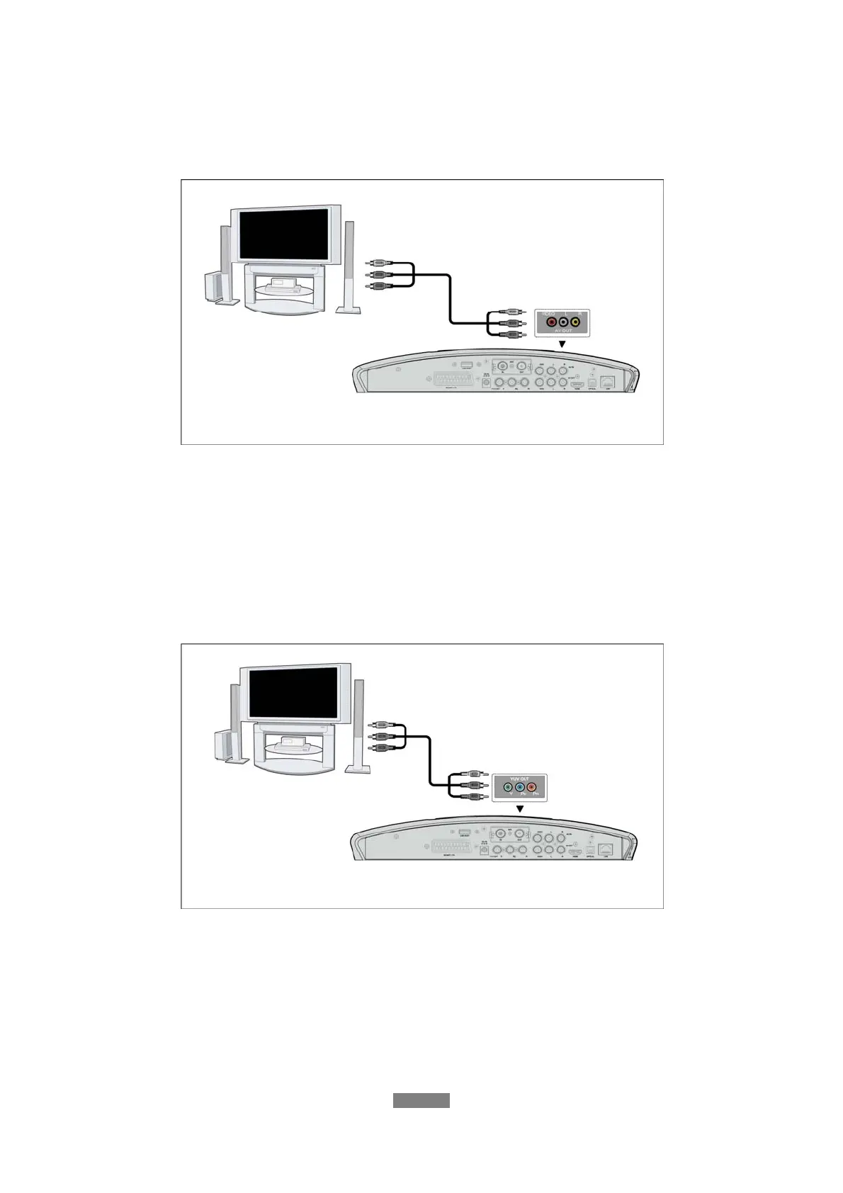 (2) Follow the picture and plug in the 3 color connector to the TV’s Y/Pb/Pr jack.