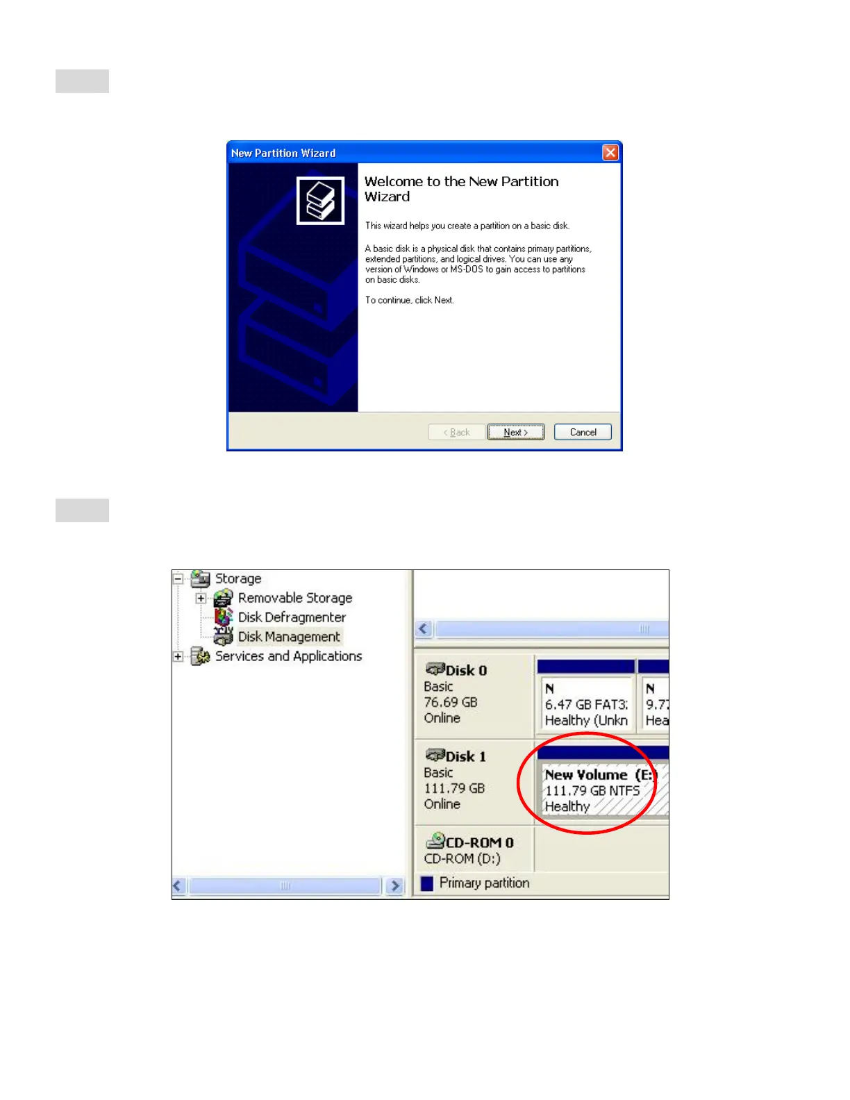 STEP6: The “New Partition Wizard” will appear. Please follow the instruction of the wizard to
