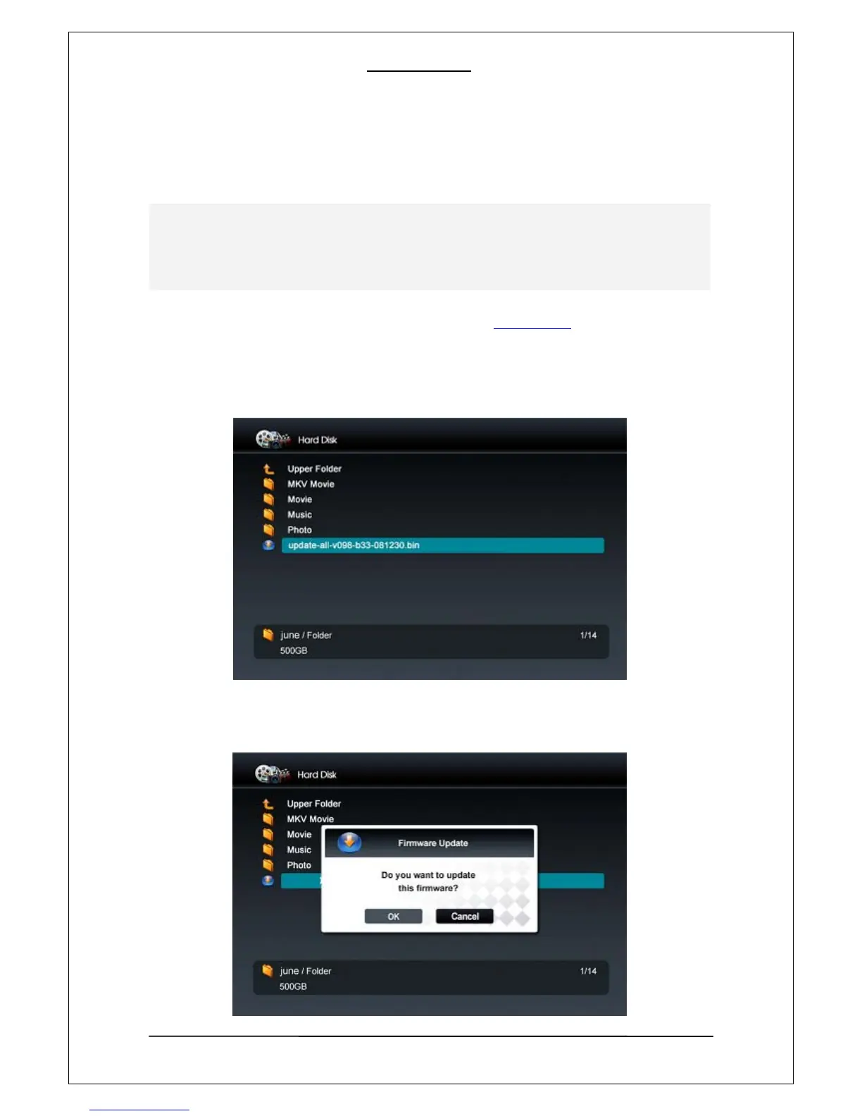 du firmware en utilisant la télécommande et en appuyant sur la touche “OK” pour démarrer la mise à